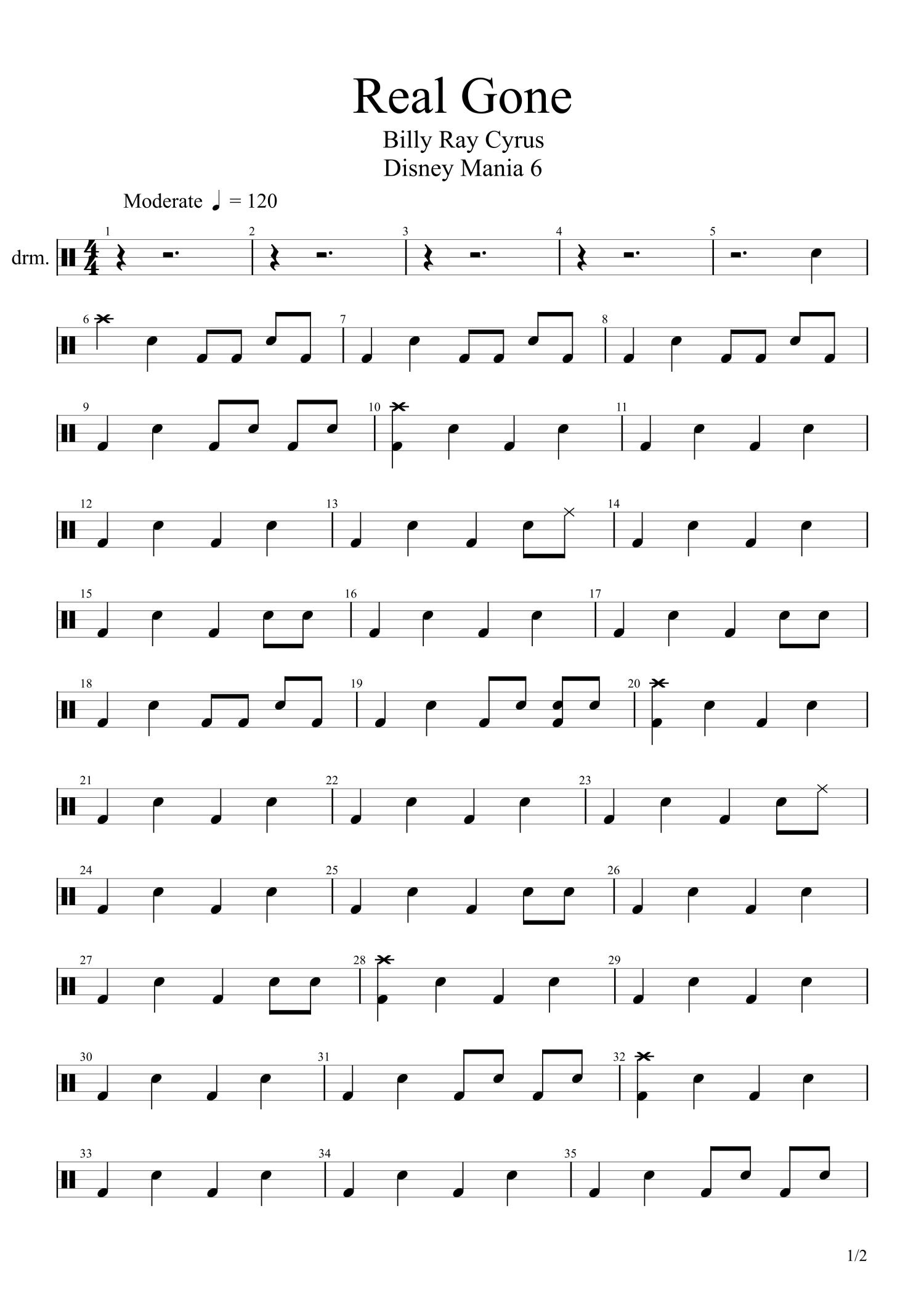• Real Gone鼓谱 - 赛车总动员主题曲 - 架子鼓谱第1张