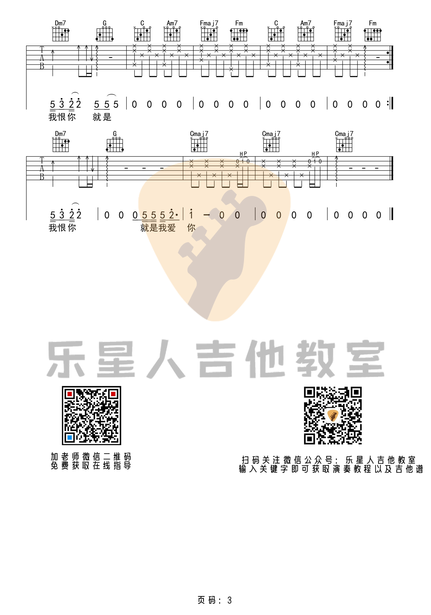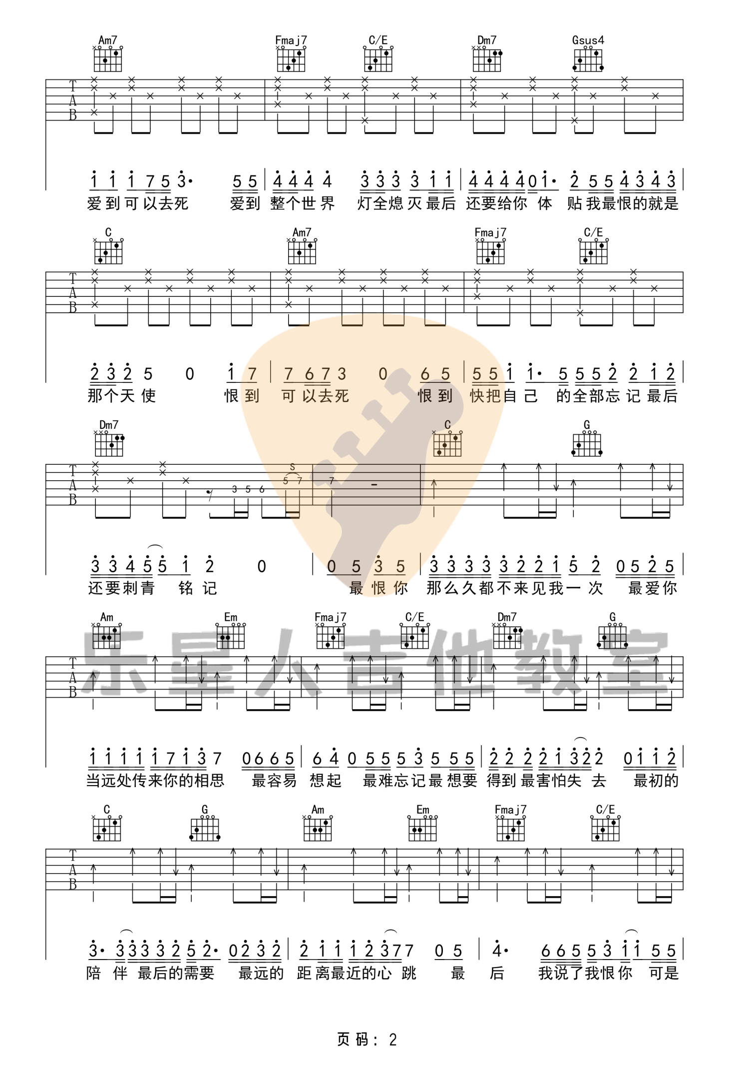吉他弹唱C调来源:乐星人吉他教室531 浏览2021-04-11 18:26发布图谱共3页
