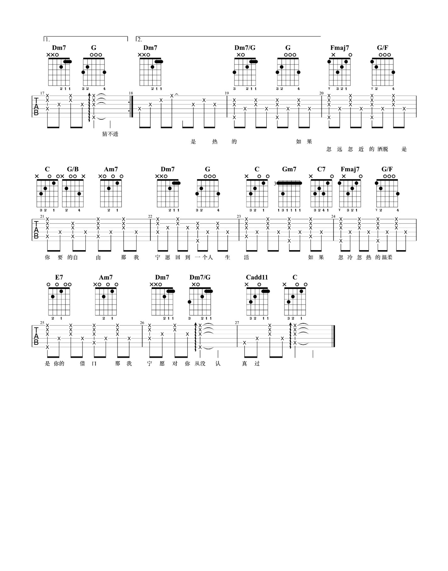 当前位置:琴谱网>吉他弹唱>猜不透