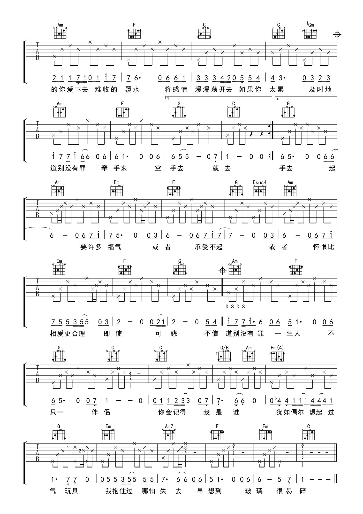 吉他弹唱C调来源:打谱啦2301 浏览2021-04-12 13:45发布图谱共2页