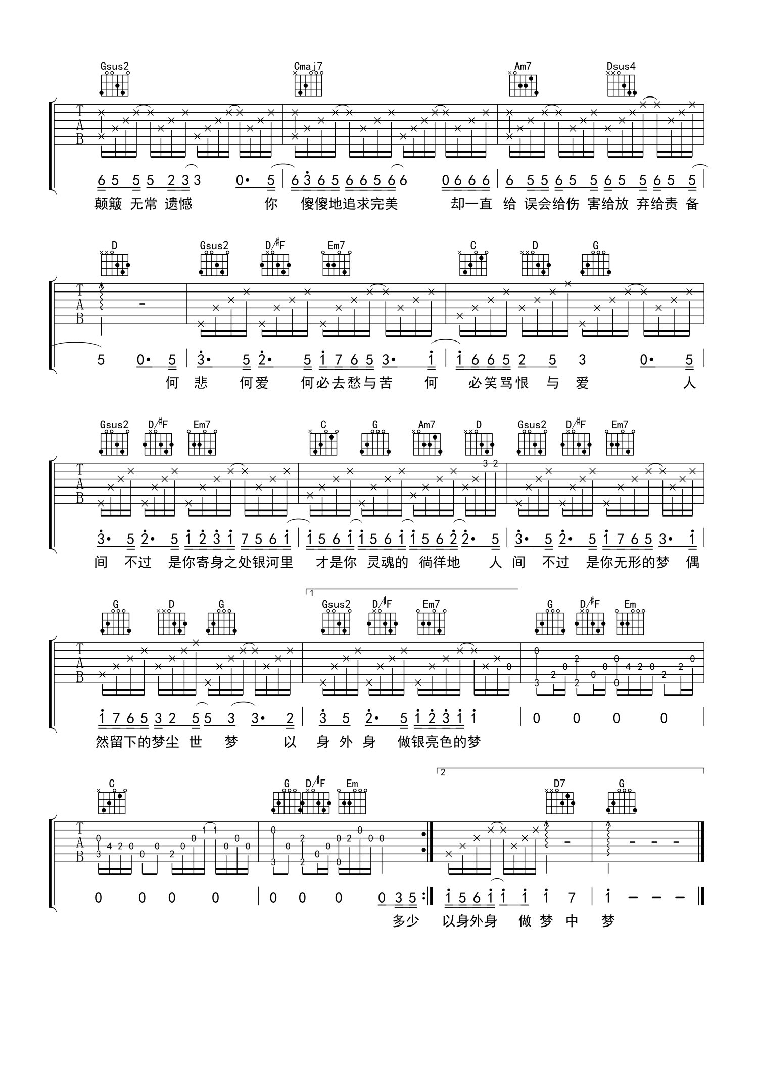 吉他弹唱G调来源:打谱啦1021 浏览2021-04-12 14:05发布图谱共2页