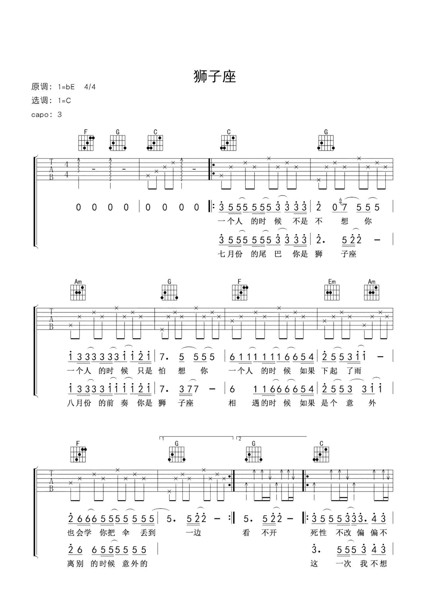当前位置:琴谱网>吉他弹唱>狮子座