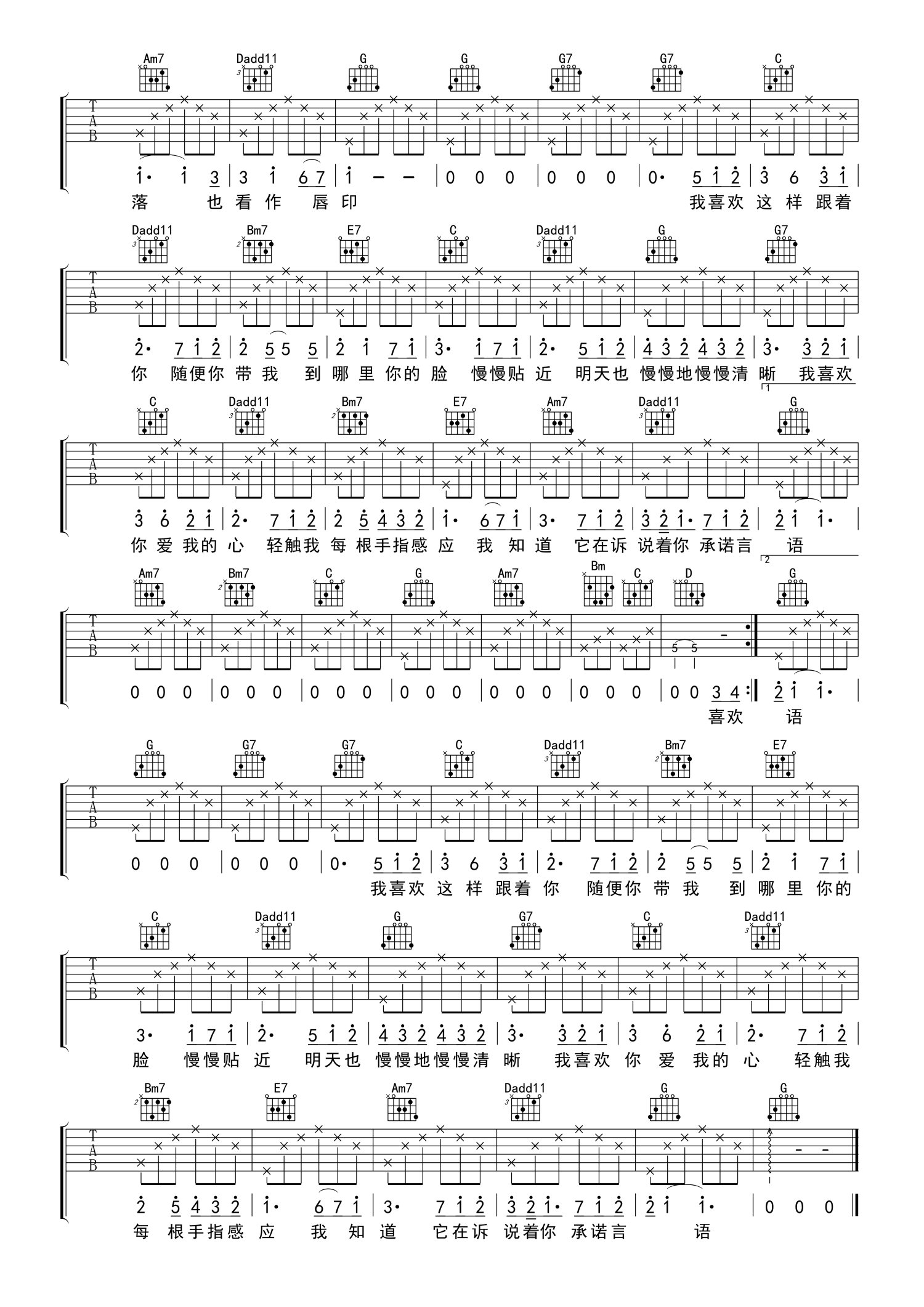 当前位置:琴谱网>吉他弹唱>喜欢你