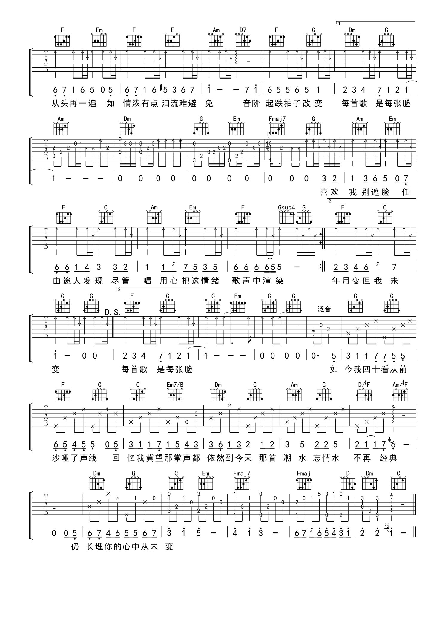 吉他弹唱C调来源:打谱啦1010 浏览2021-04-12 16:41发布图谱共2页