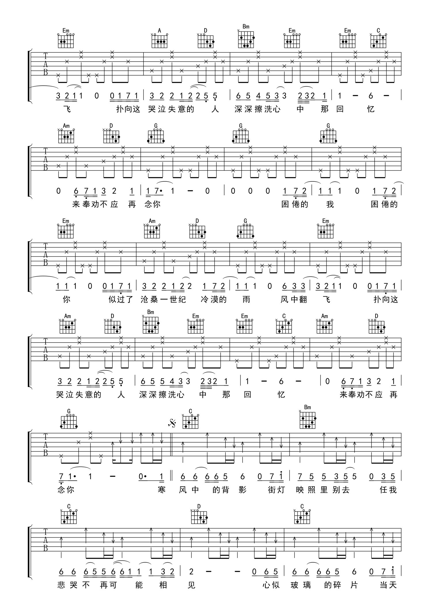 吉他弹唱G调来源:打谱啦786 浏览2021-04-12 17:03发布图谱共3页