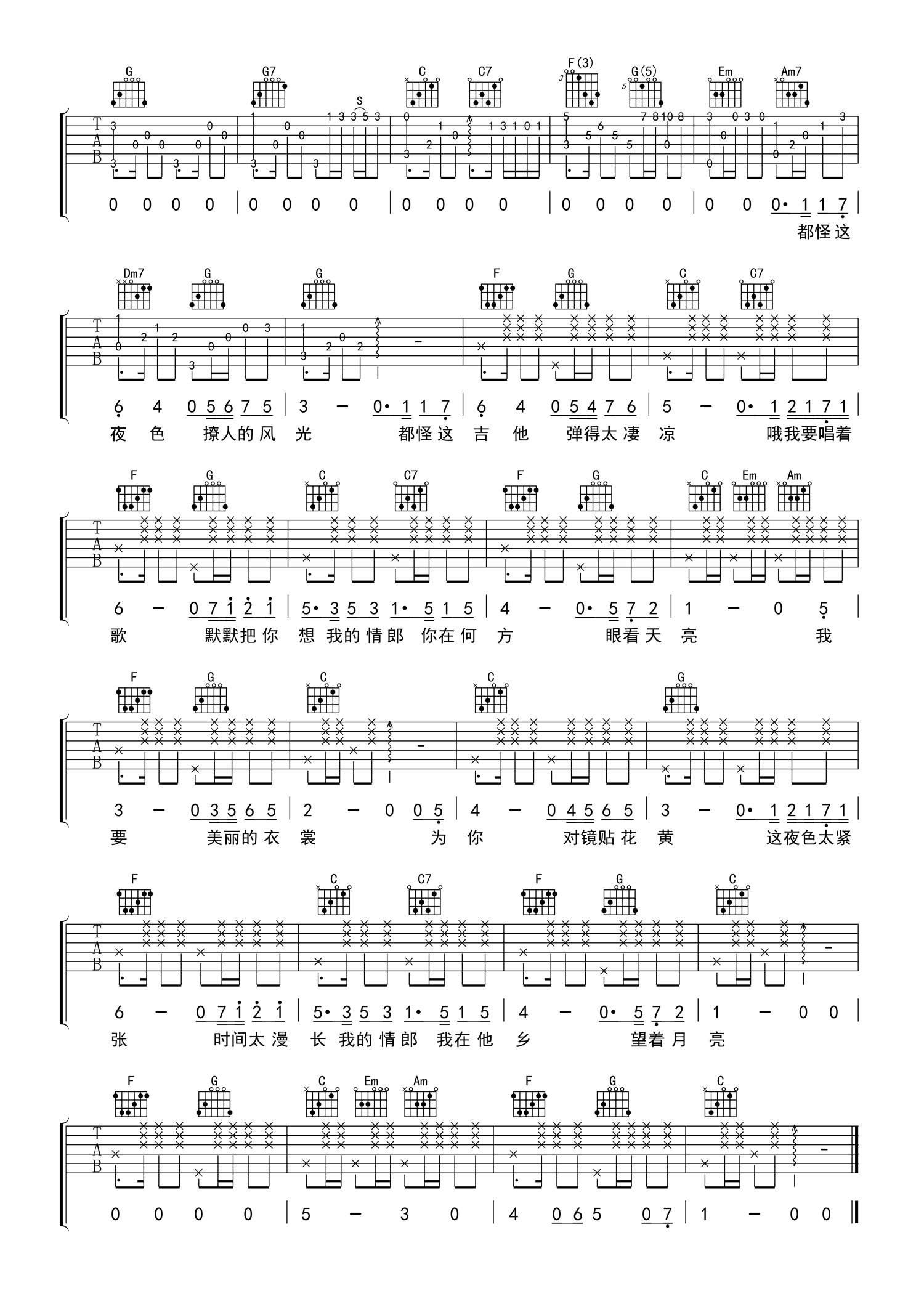 吉他弹唱C调来源:打谱啦799 浏览2021-04-12 17:05发布图谱共2页