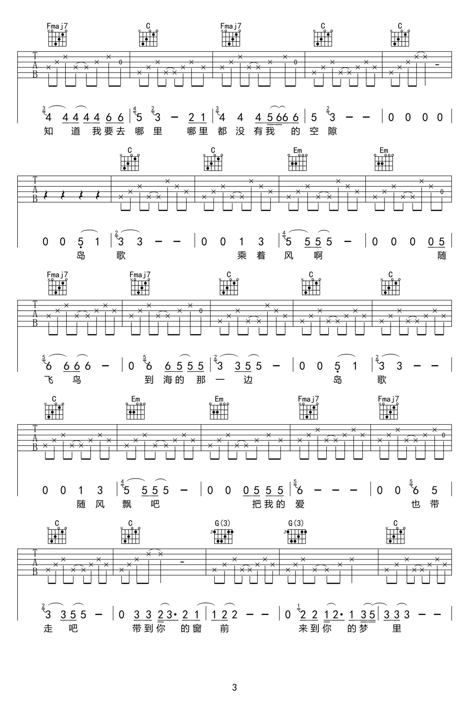 当前位置:琴谱网>吉他弹唱>岛歌
