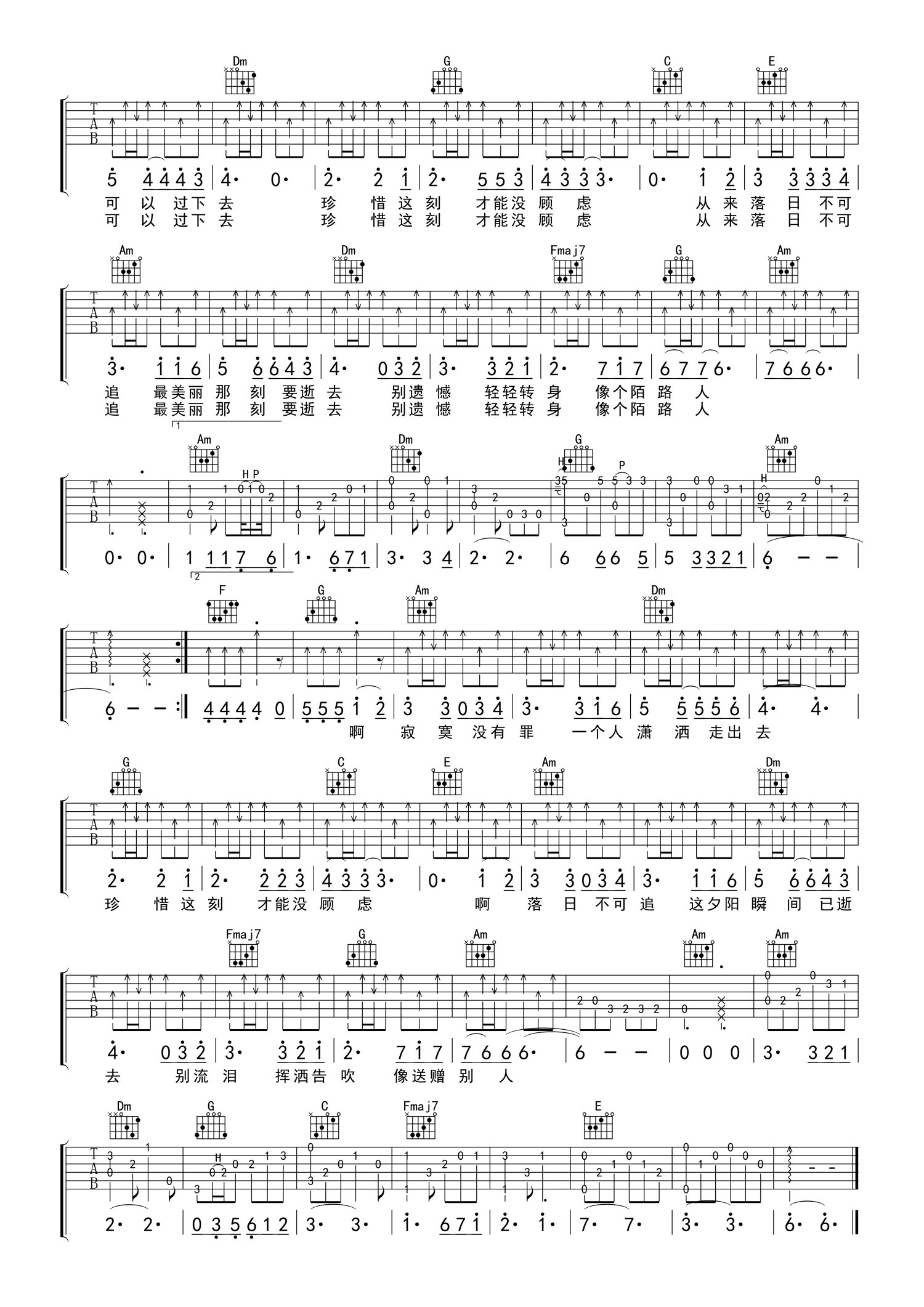 吉他弹唱C调来源:打谱啦854 浏览2021-04-13 09:30发布图谱共2页
