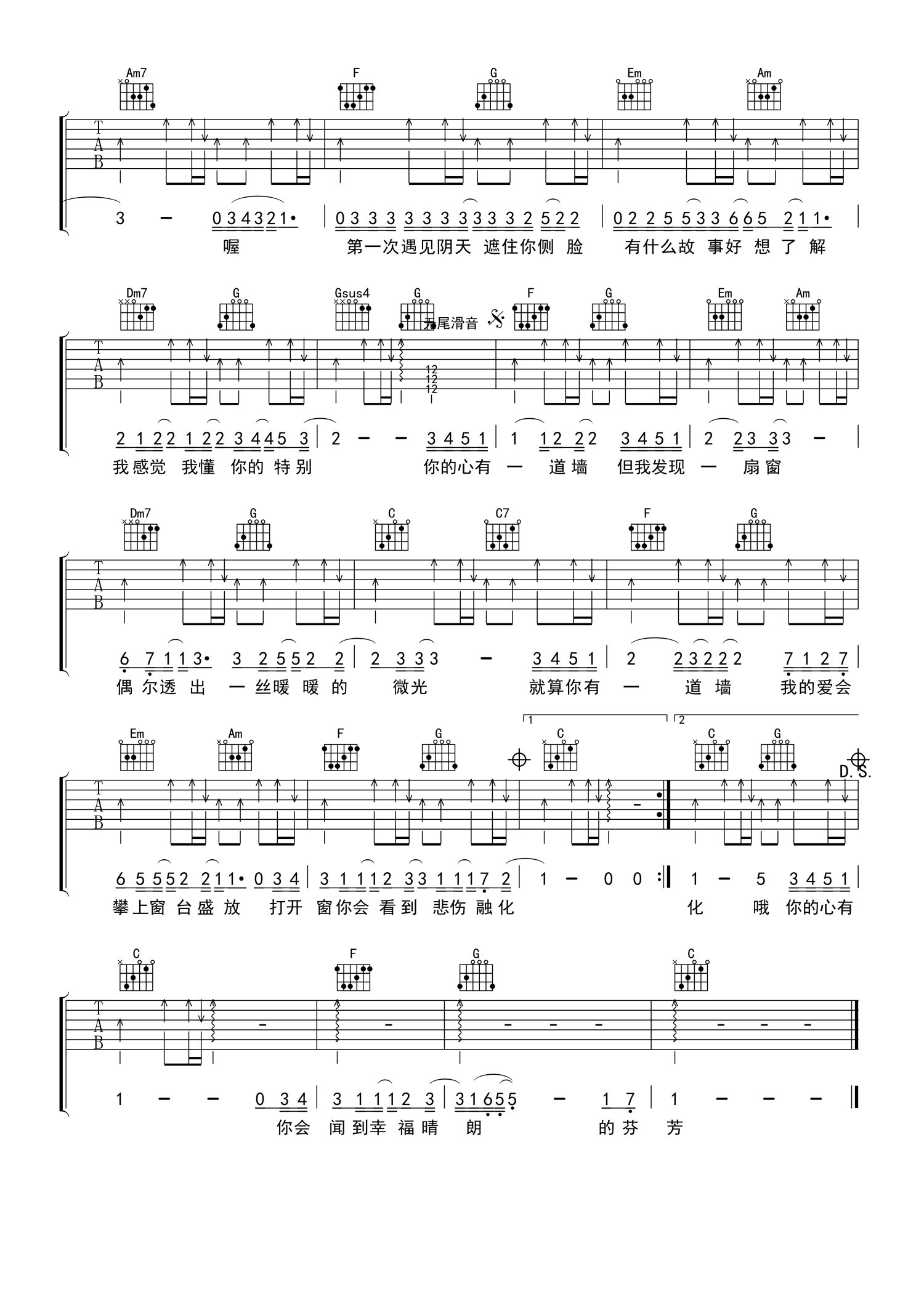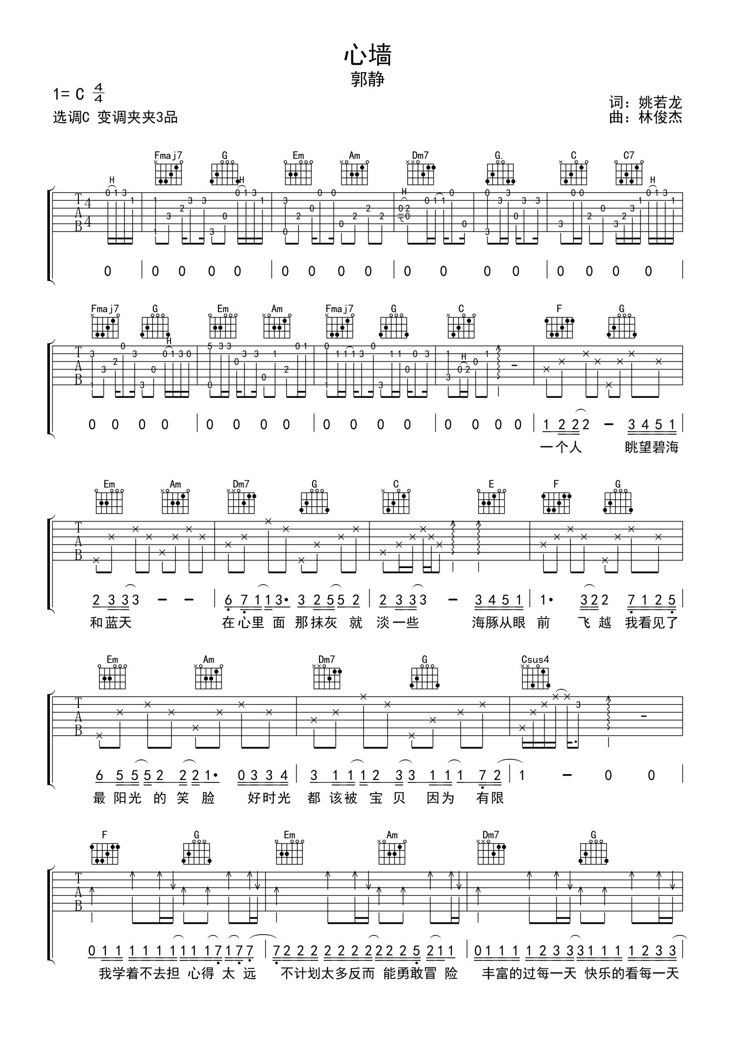 曲谱介绍: 郭静《心墙》吉他谱_C调吉他弹唱谱