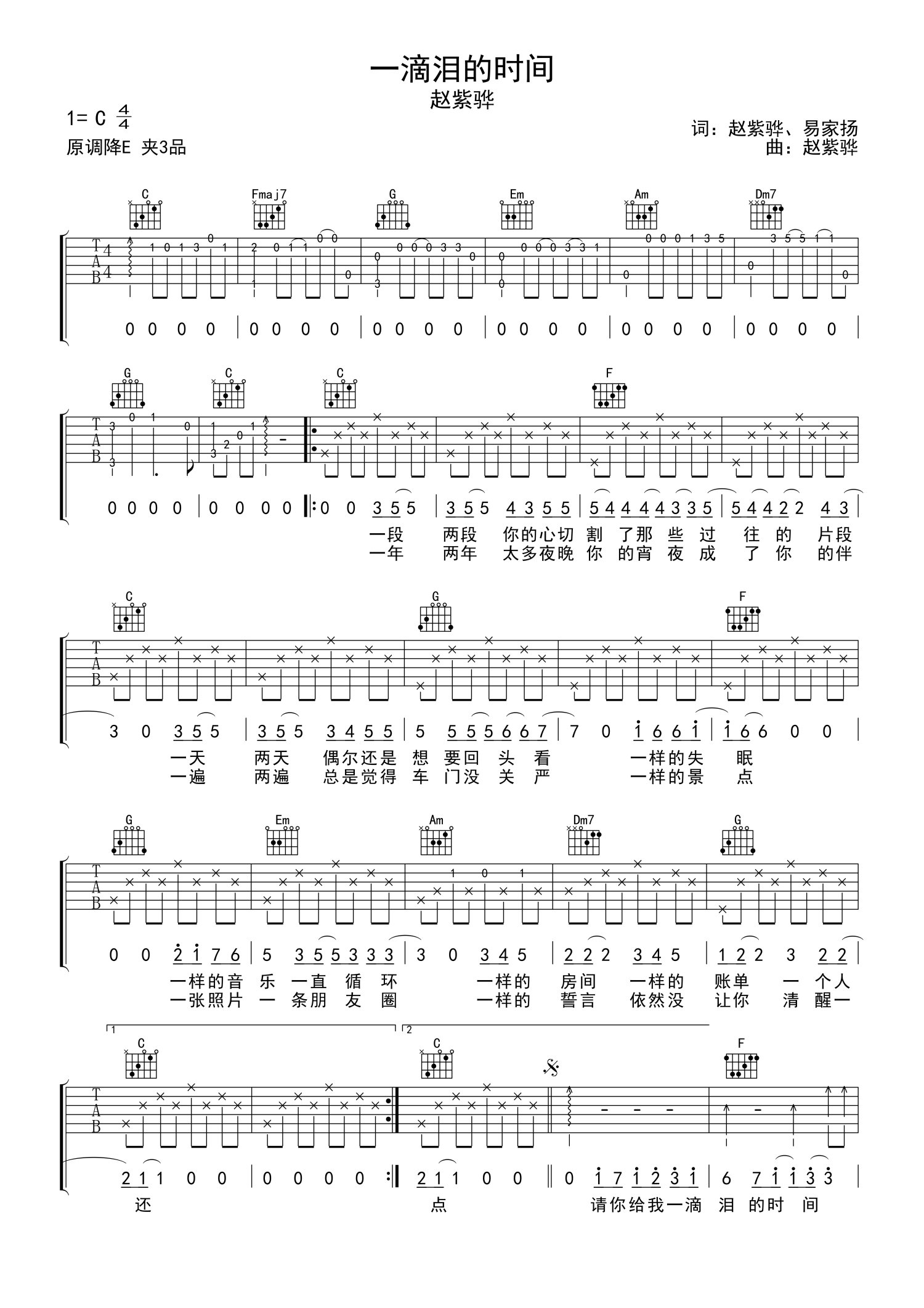 曲谱介绍: 赵紫骅《一滴泪的时间》吉他谱_C调吉他弹唱谱