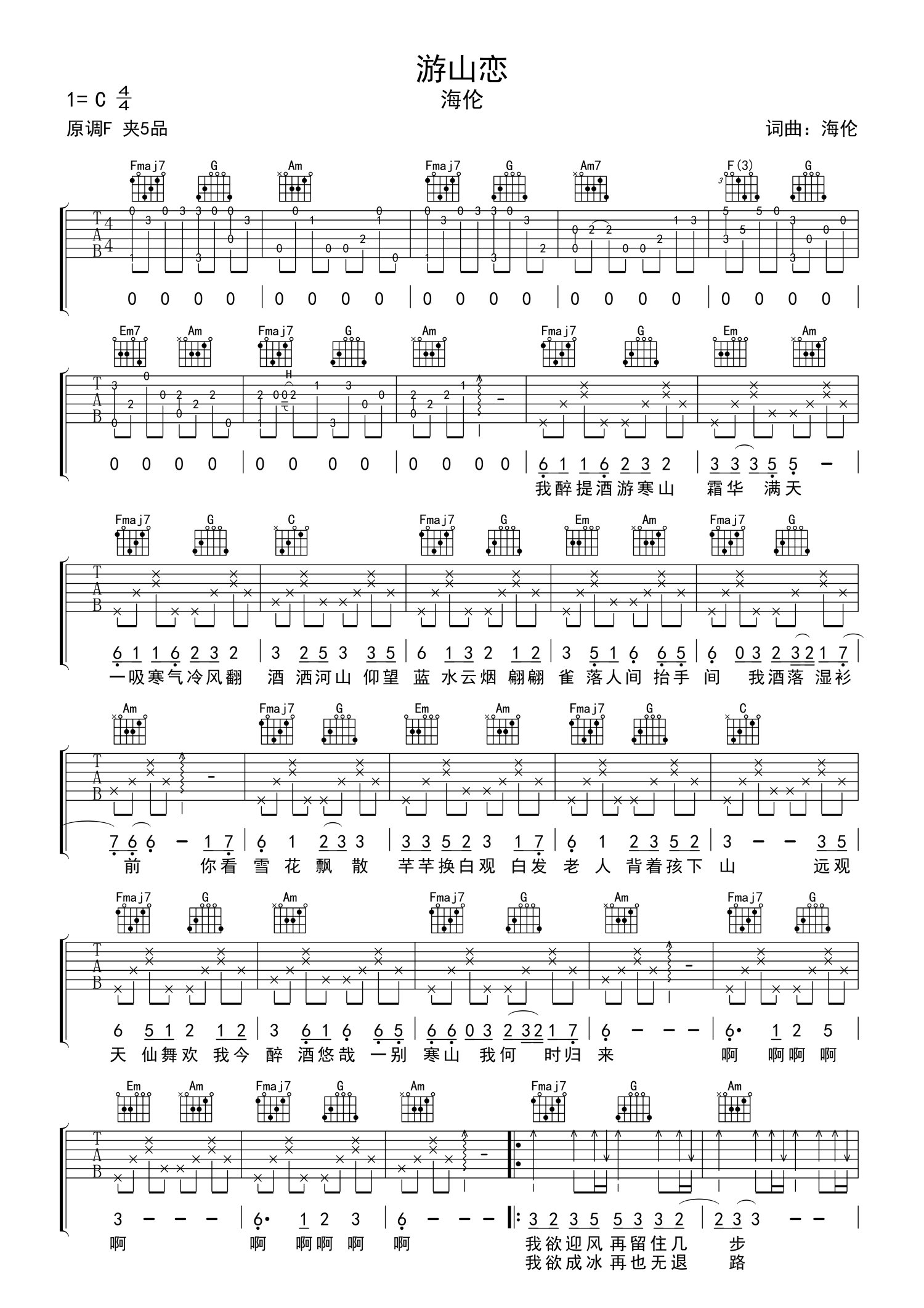 游山恋吉他谱 - 海伦 - C调吉他弹唱谱