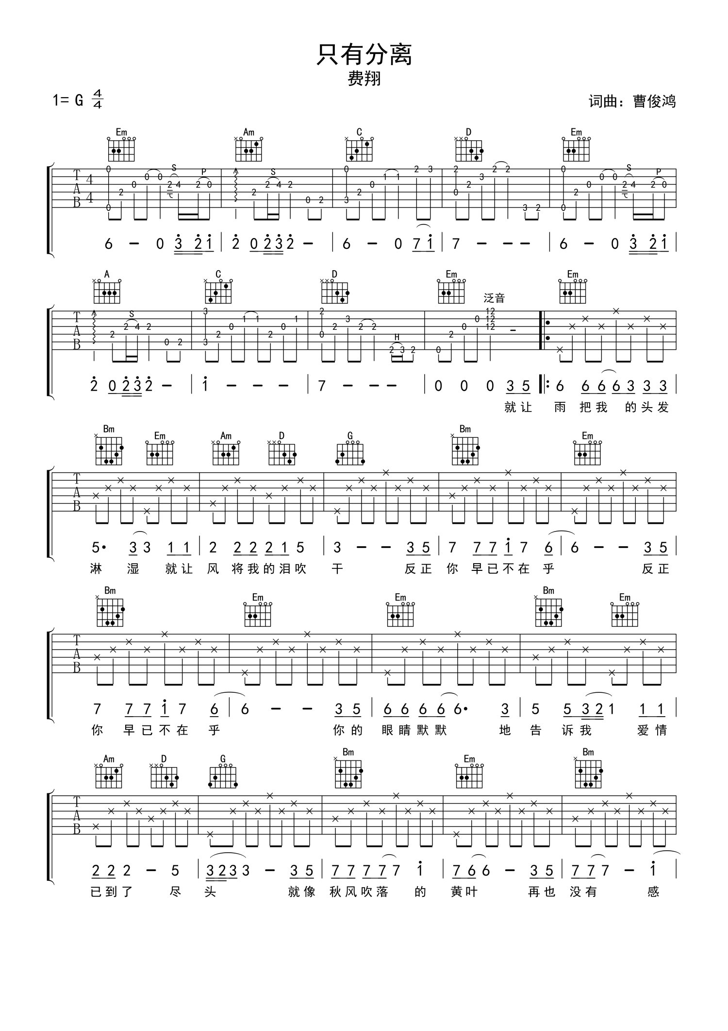 曲谱介绍: 费翔《只有分离》吉他谱_G调吉他弹唱谱