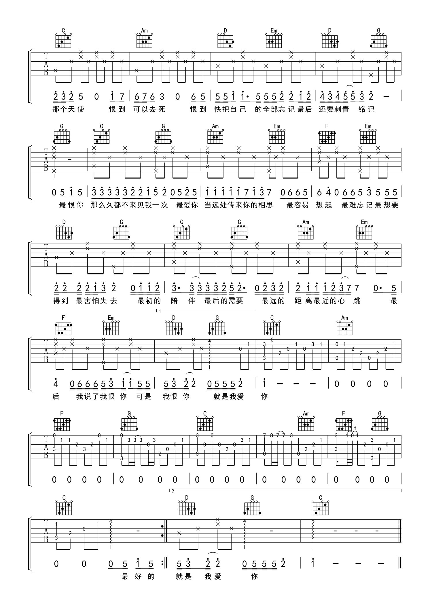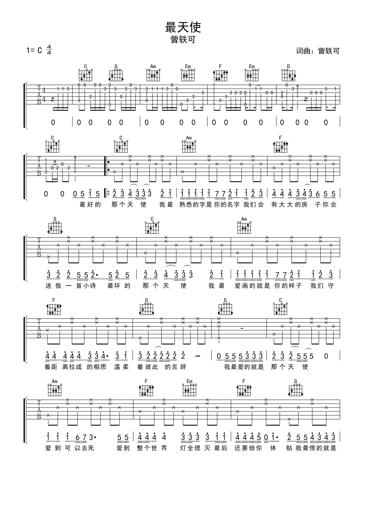 曲谱介绍: 曾轶可《最天使》吉他谱_C调吉他弹唱谱