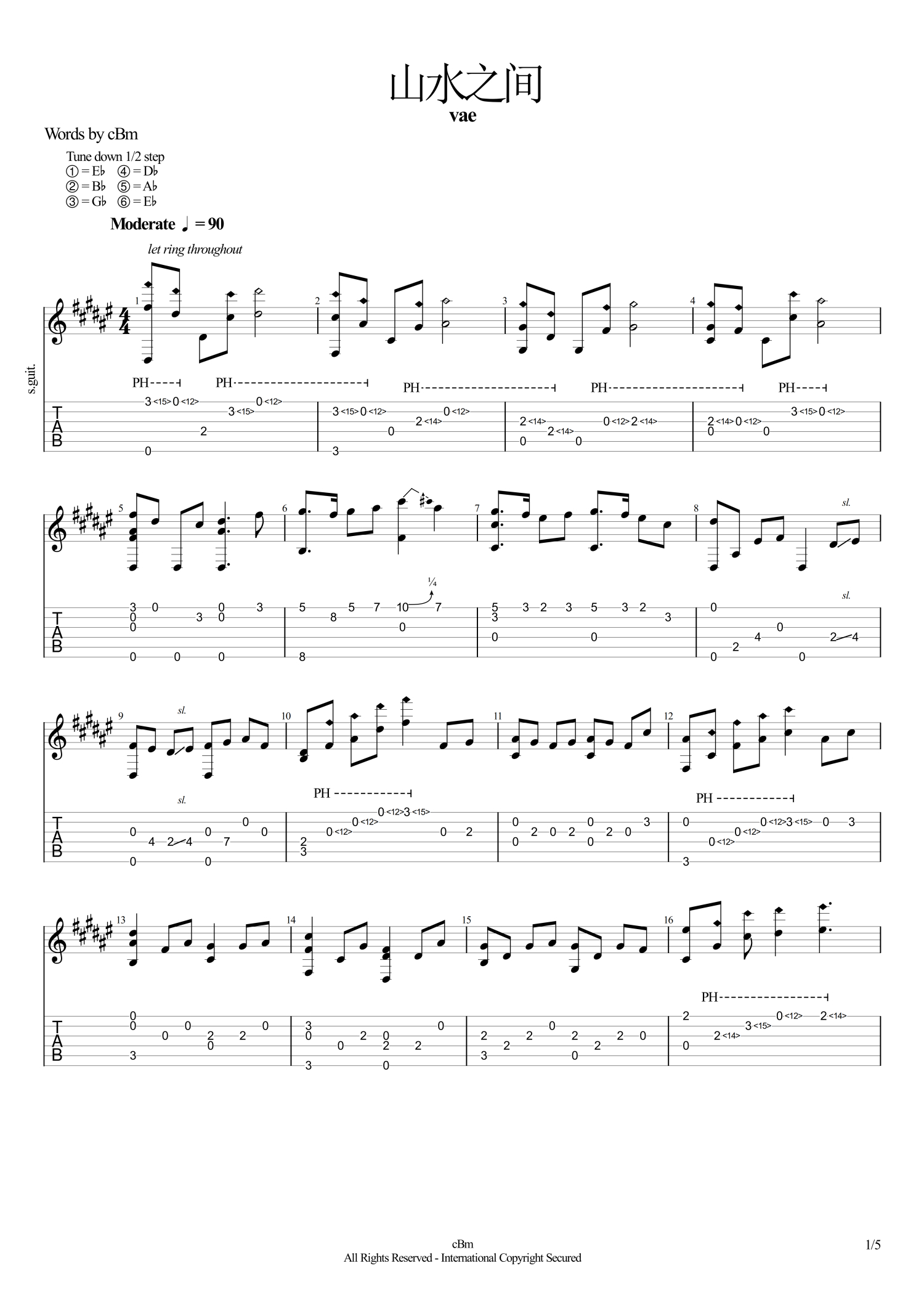 • 山水之间吉他谱 - 许嵩 - 吉他独奏谱第1张