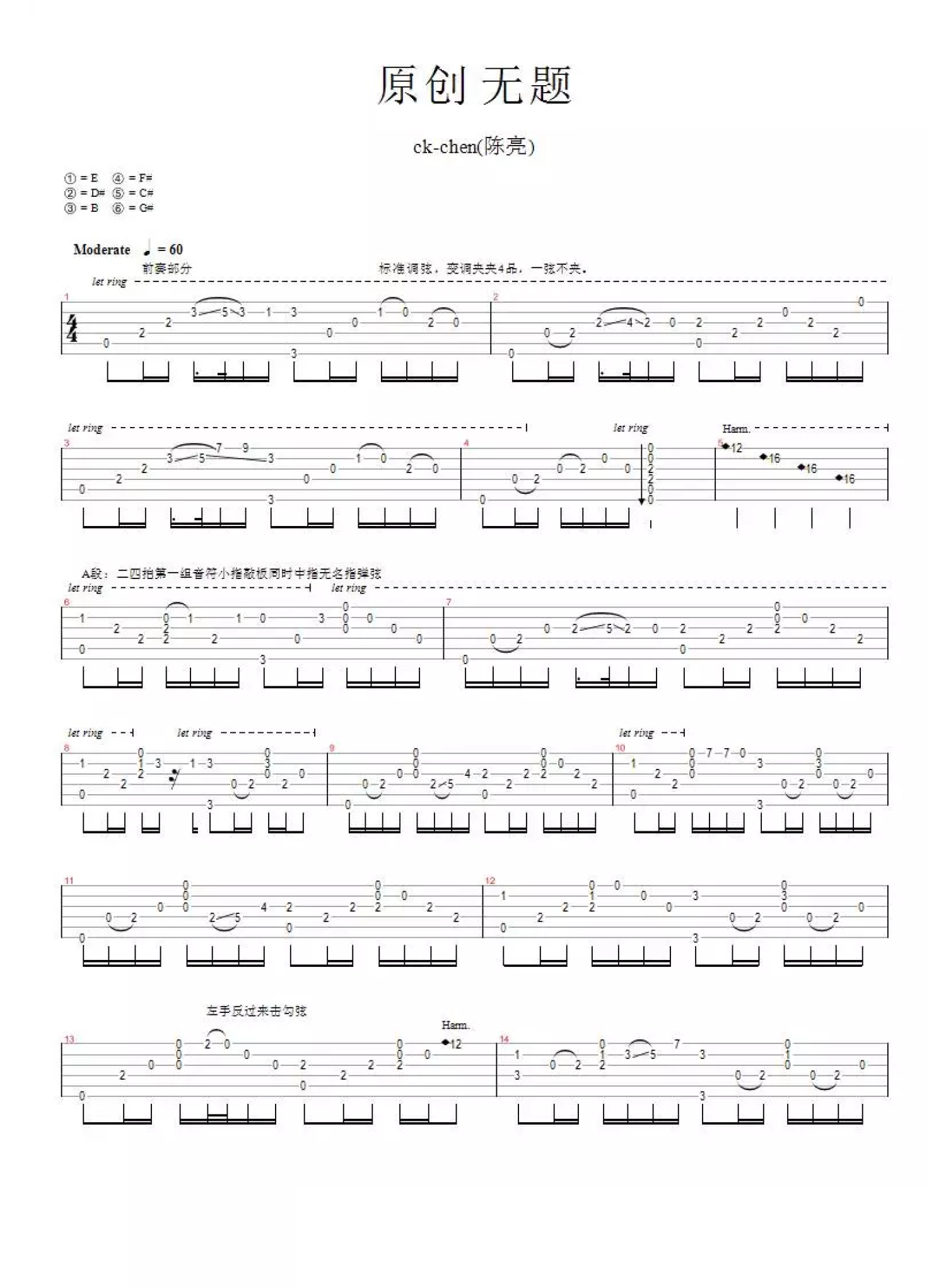 曲谱介绍: 陈亮《无题》吉他谱_吉他独奏谱