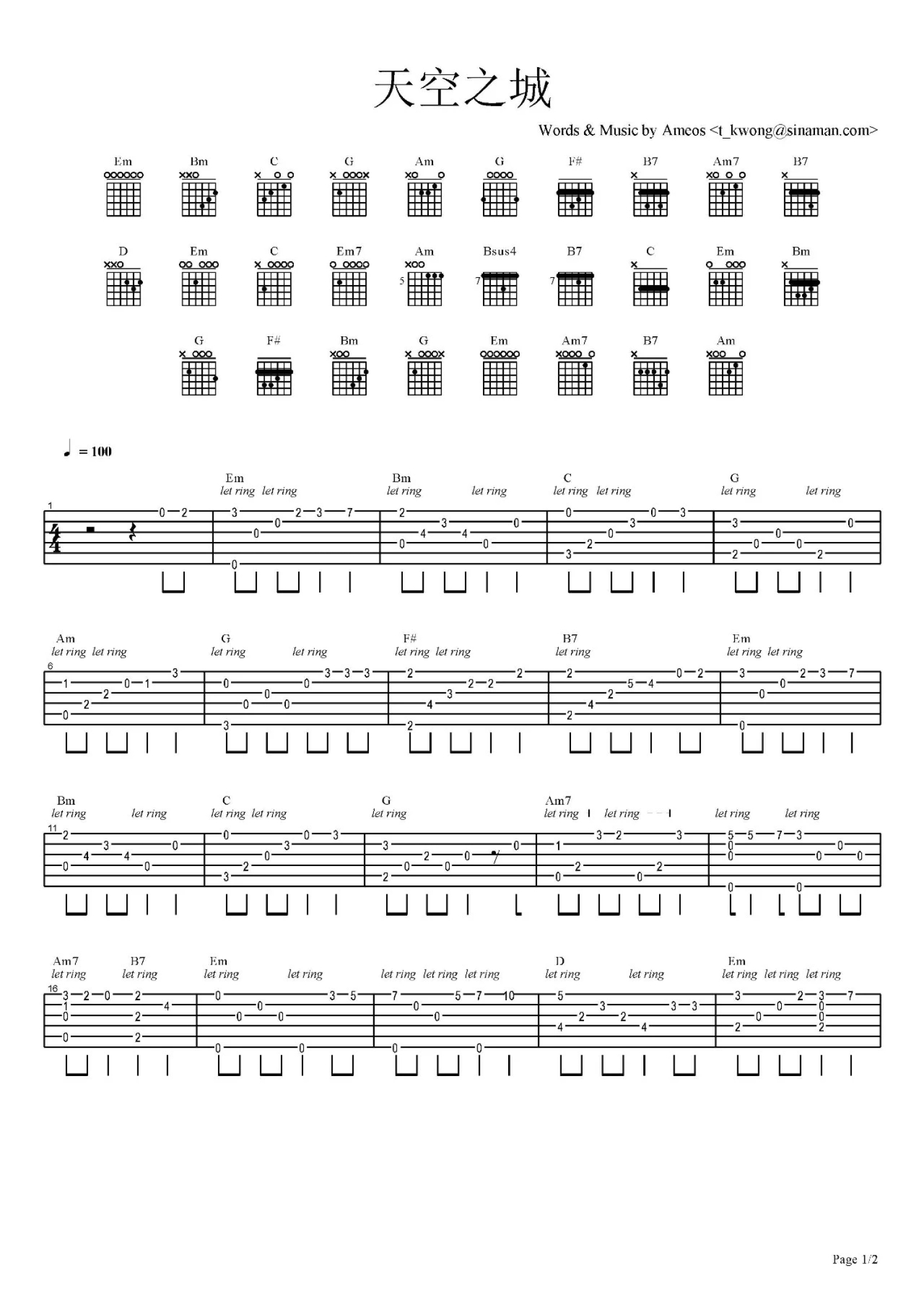 吉他独奏C调来源:网络转载821 浏览2021-04-23 19:58发布图谱共2页
