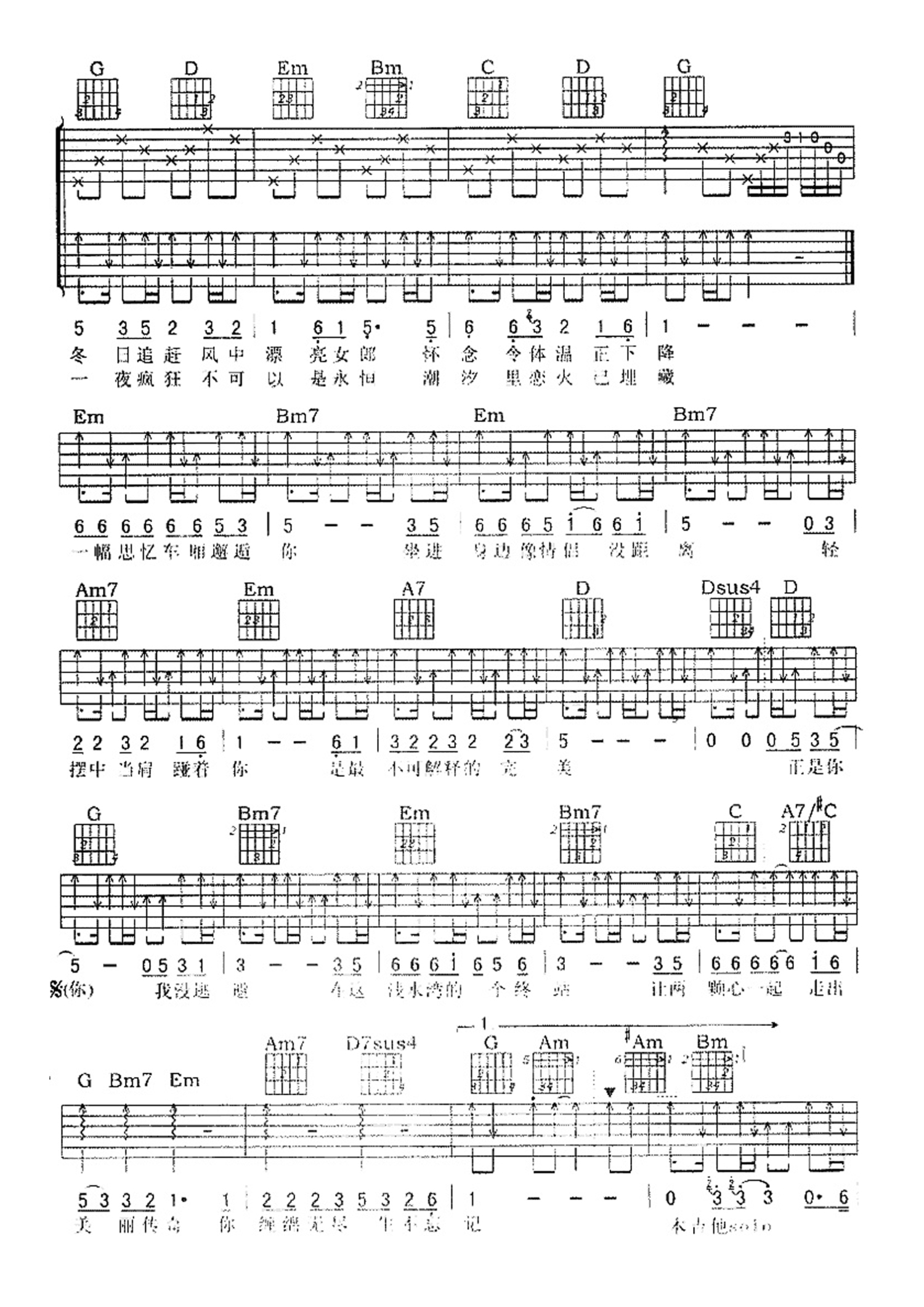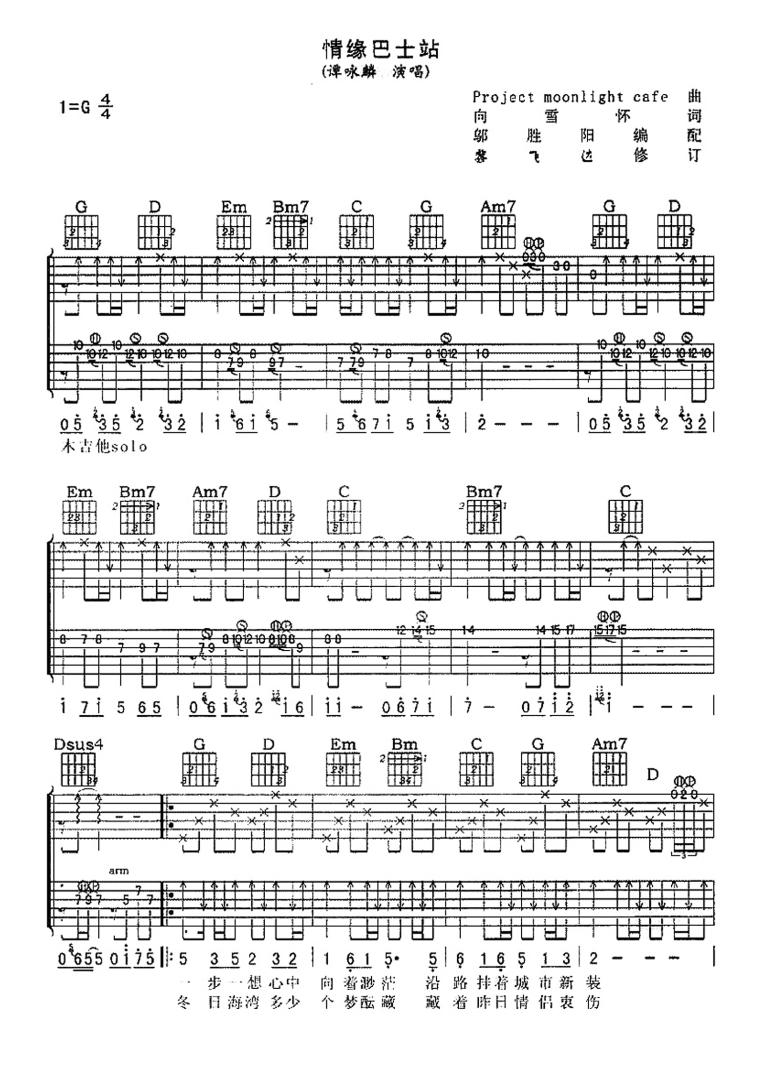 曲谱介绍: 谭咏麟《情缘巴士站》吉他谱_G调吉他弹唱谱