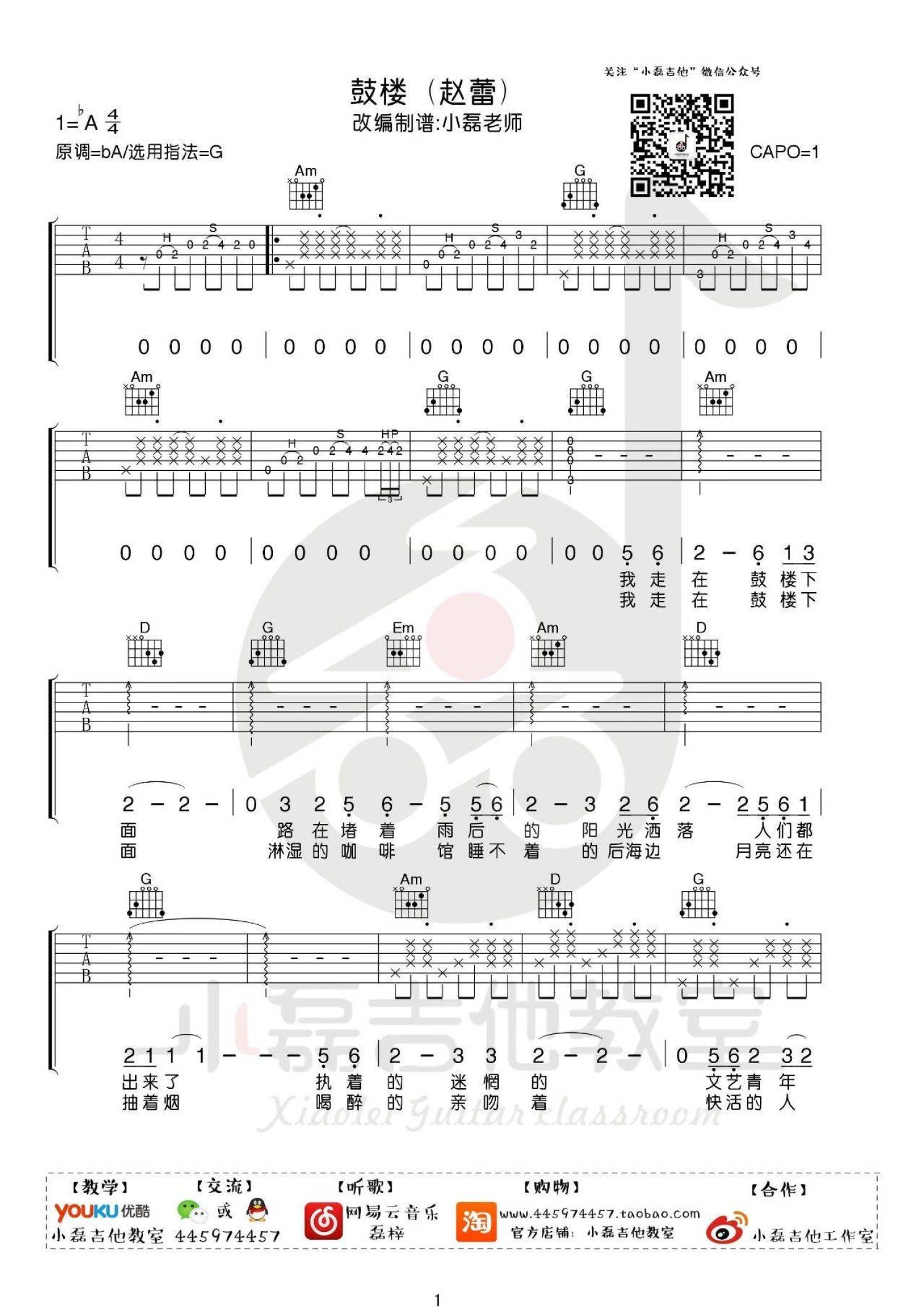 鼓楼吉他谱 - 赵雷 - G调吉他弹唱谱