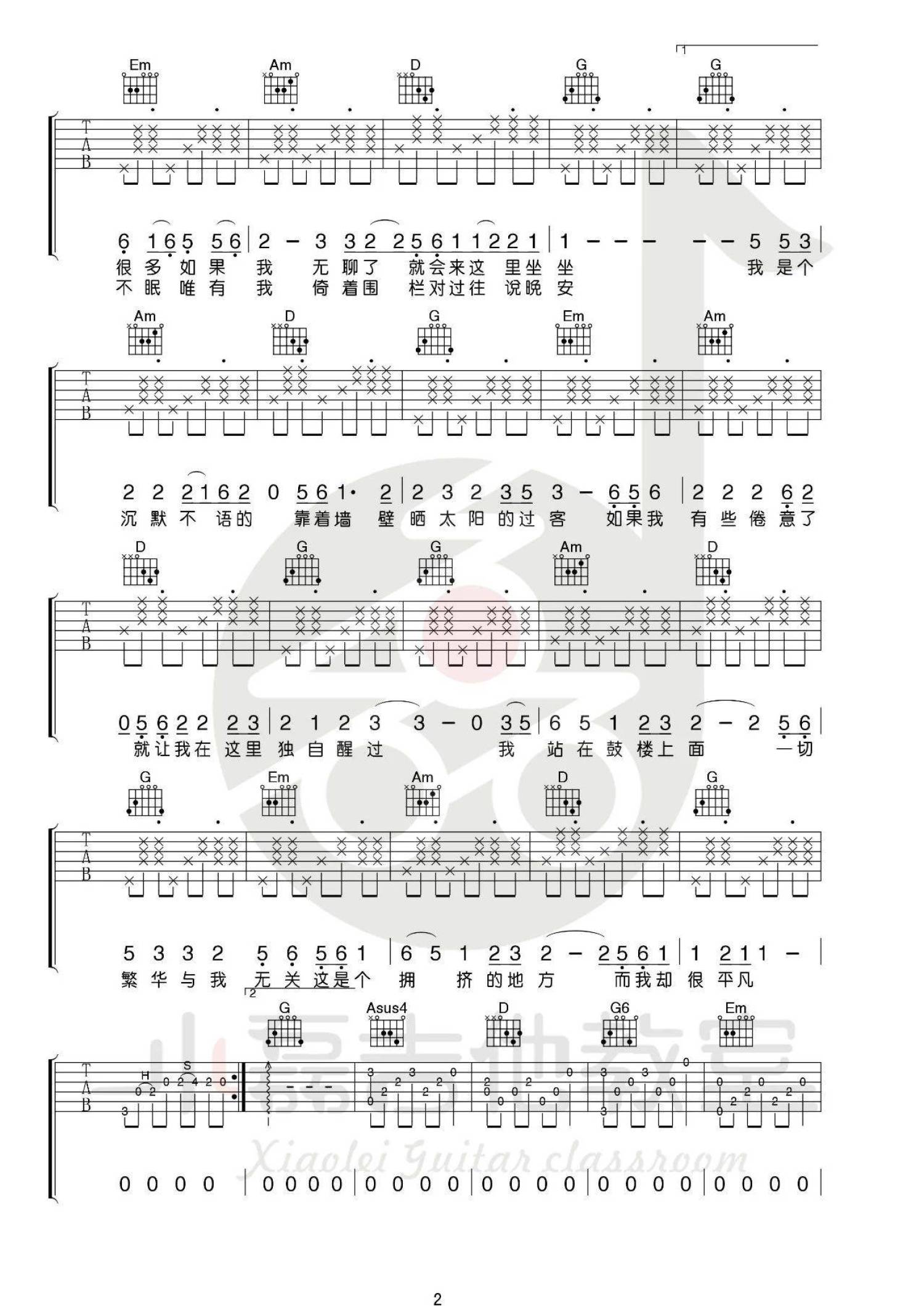 当前位置:琴谱网>吉他弹唱>鼓楼