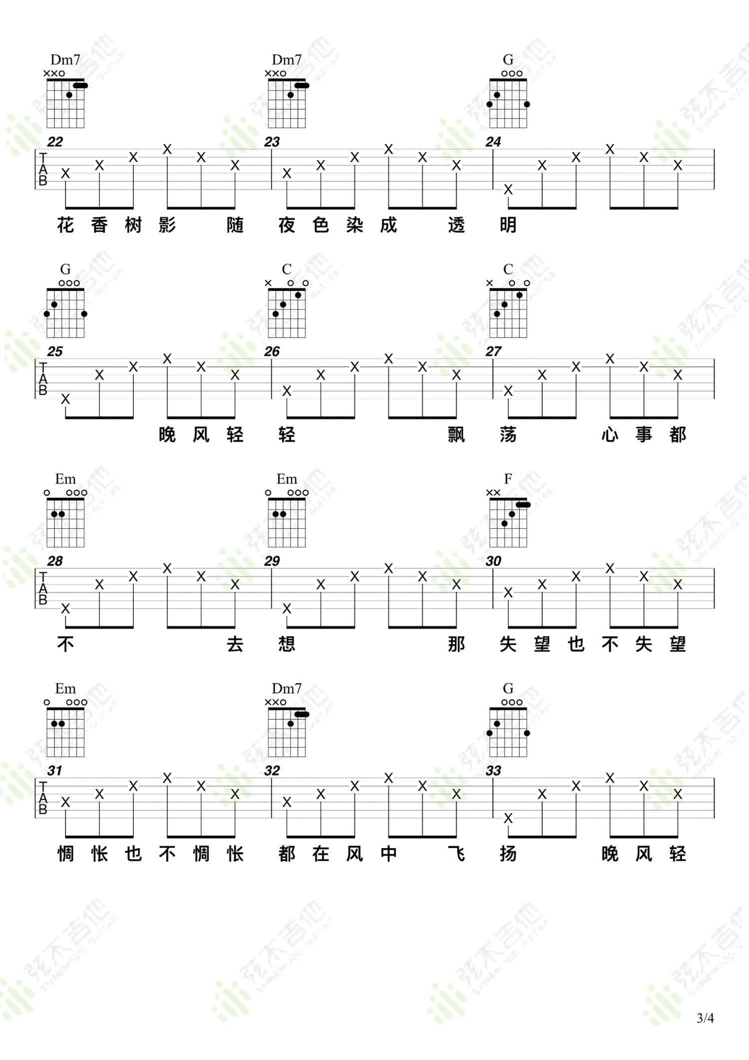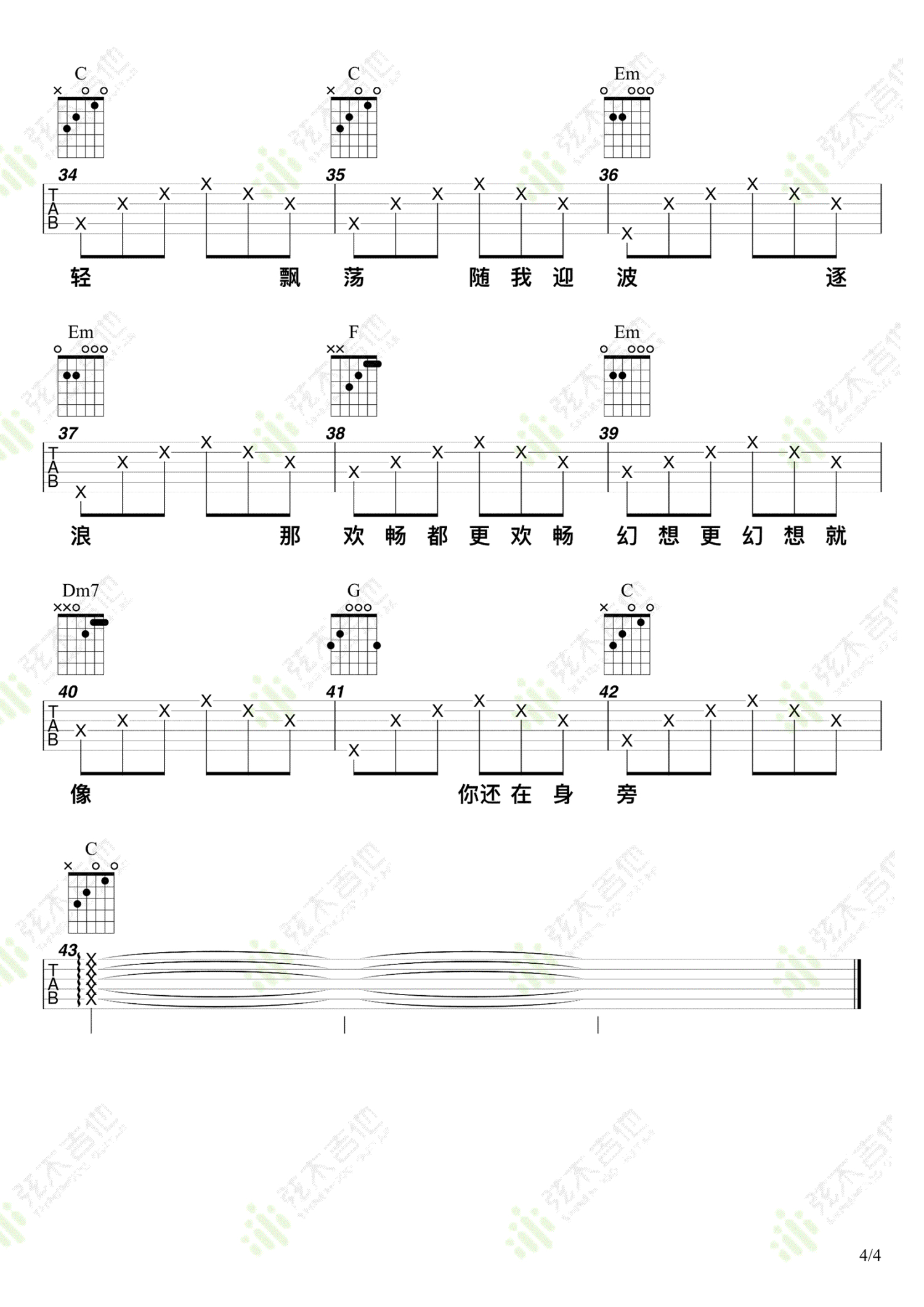吉他弹唱C调来源:弦木吉他12769 浏览2021-05-08 08:11发布图谱共4页