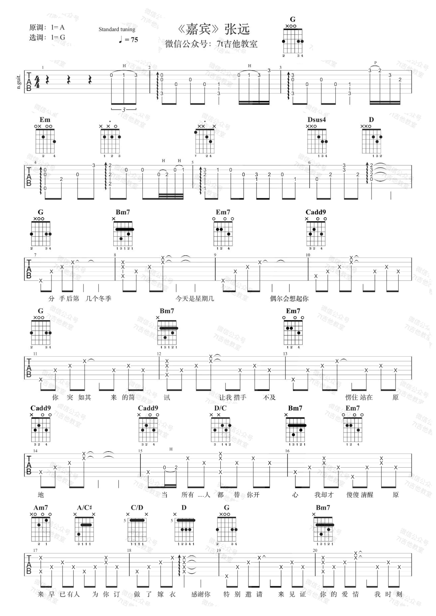 嘉宾吉他谱 - 张远 - G调吉他弹唱谱