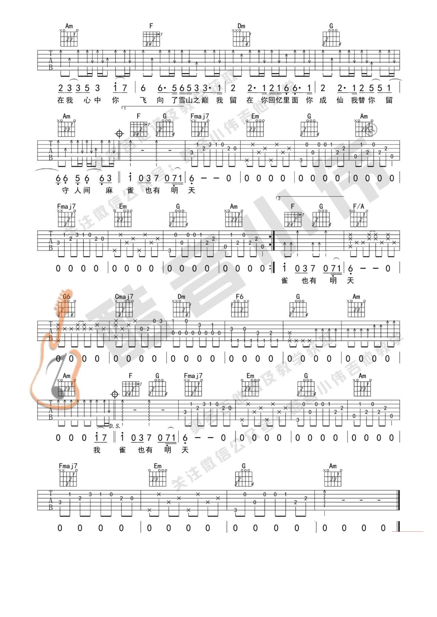 当前位置:琴谱网>吉他弹唱>麻雀