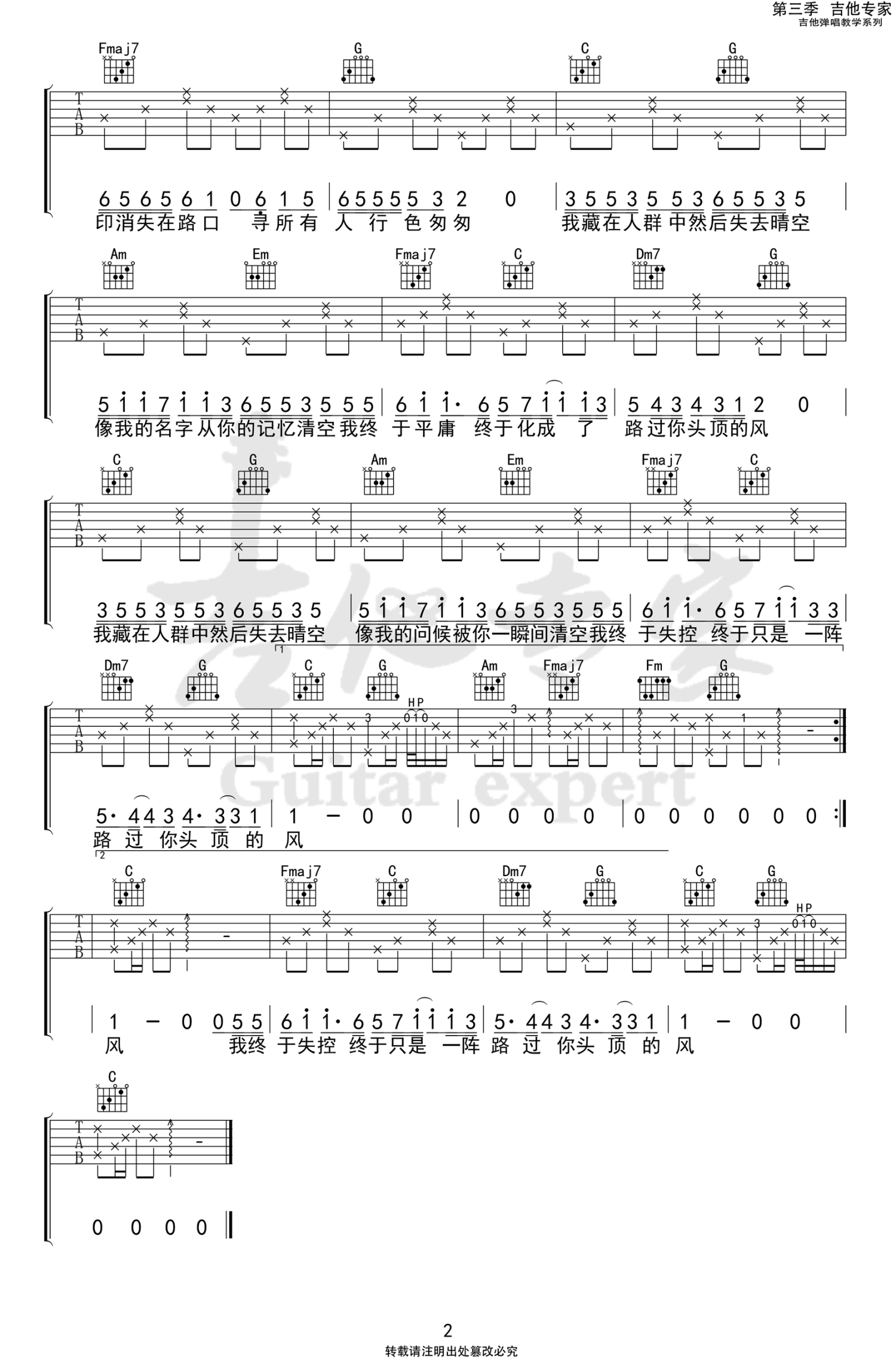当前位置:琴谱网>吉他弹唱>你头顶的风