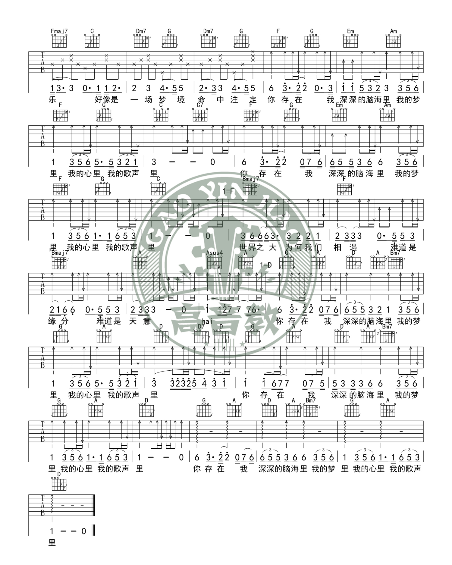 曲谱介绍: 曲婉婷《我的歌声里》吉他谱_C调吉他弹唱谱