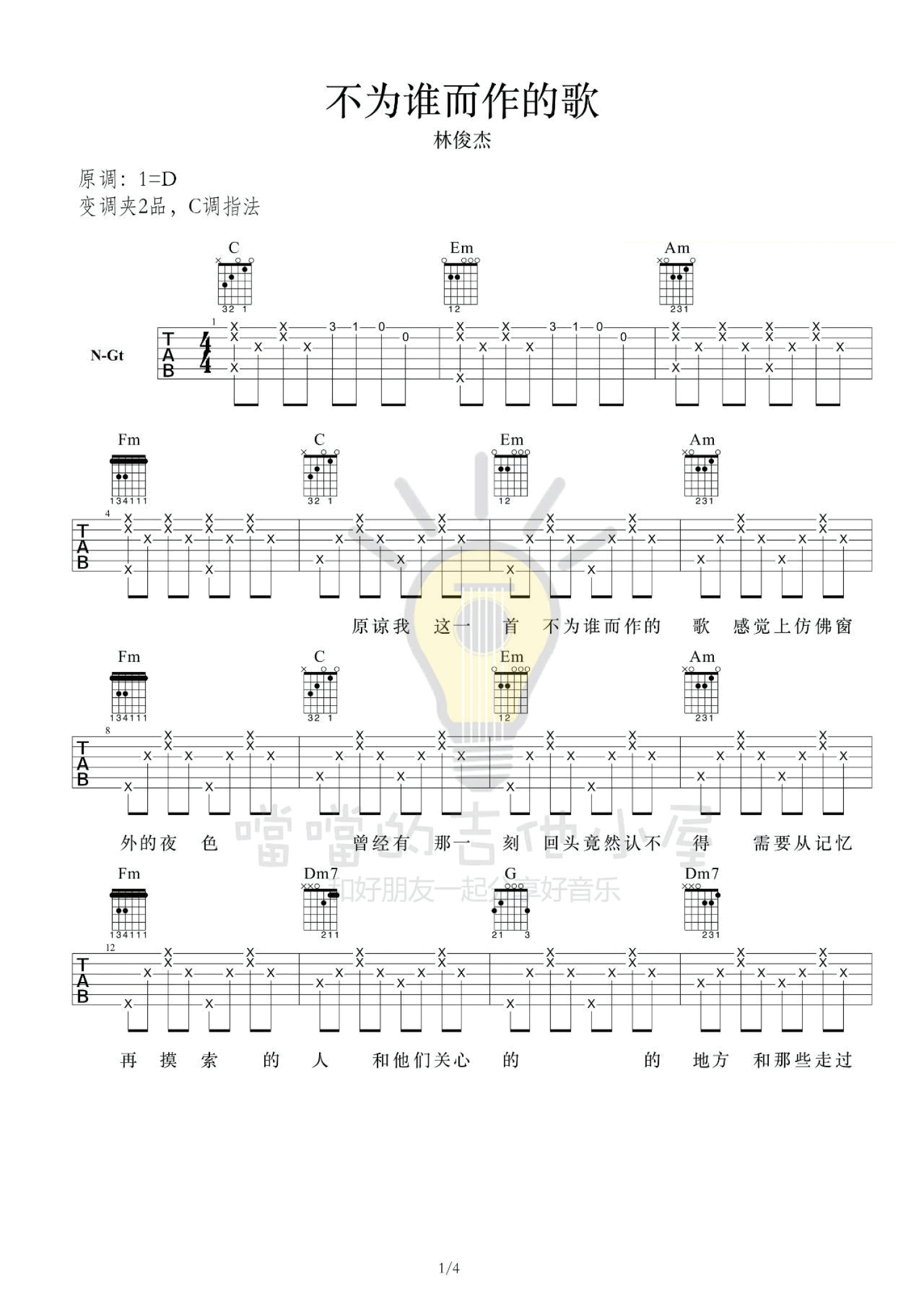 曲谱介绍: 林俊杰《不为谁而做的歌》吉他谱_C调吉他弹唱谱