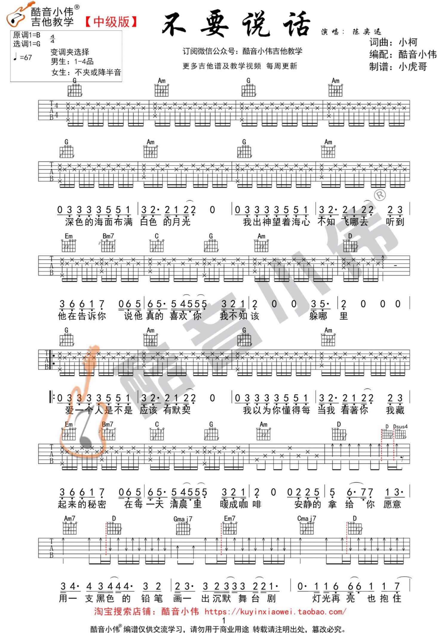 吉他弹唱G调来源:酷音小伟714 浏览2021-05-15 08:28发布图谱共3页