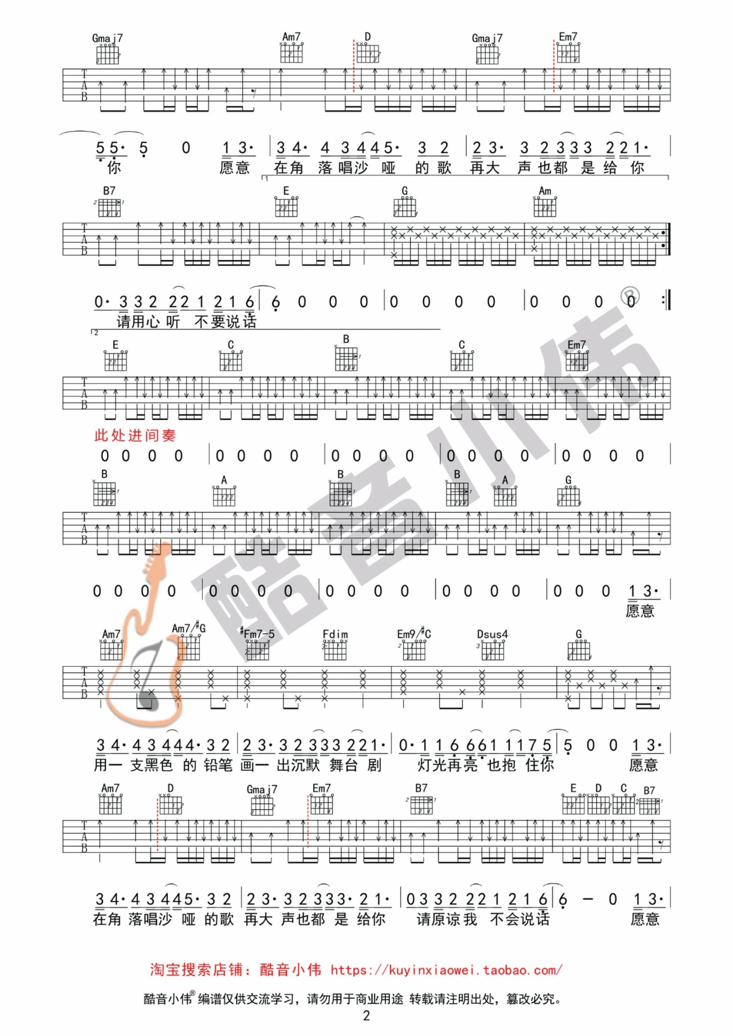 当前位置:琴谱网>吉他弹唱>不要说话