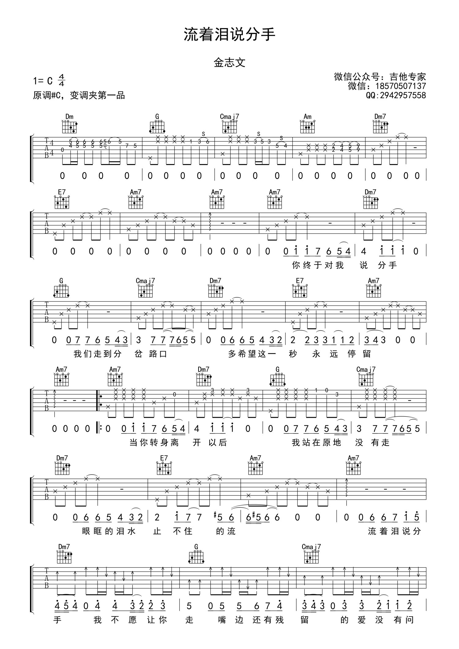 • 流着泪说分手吉他谱 - 金志文 - C调吉他弹唱谱第1张