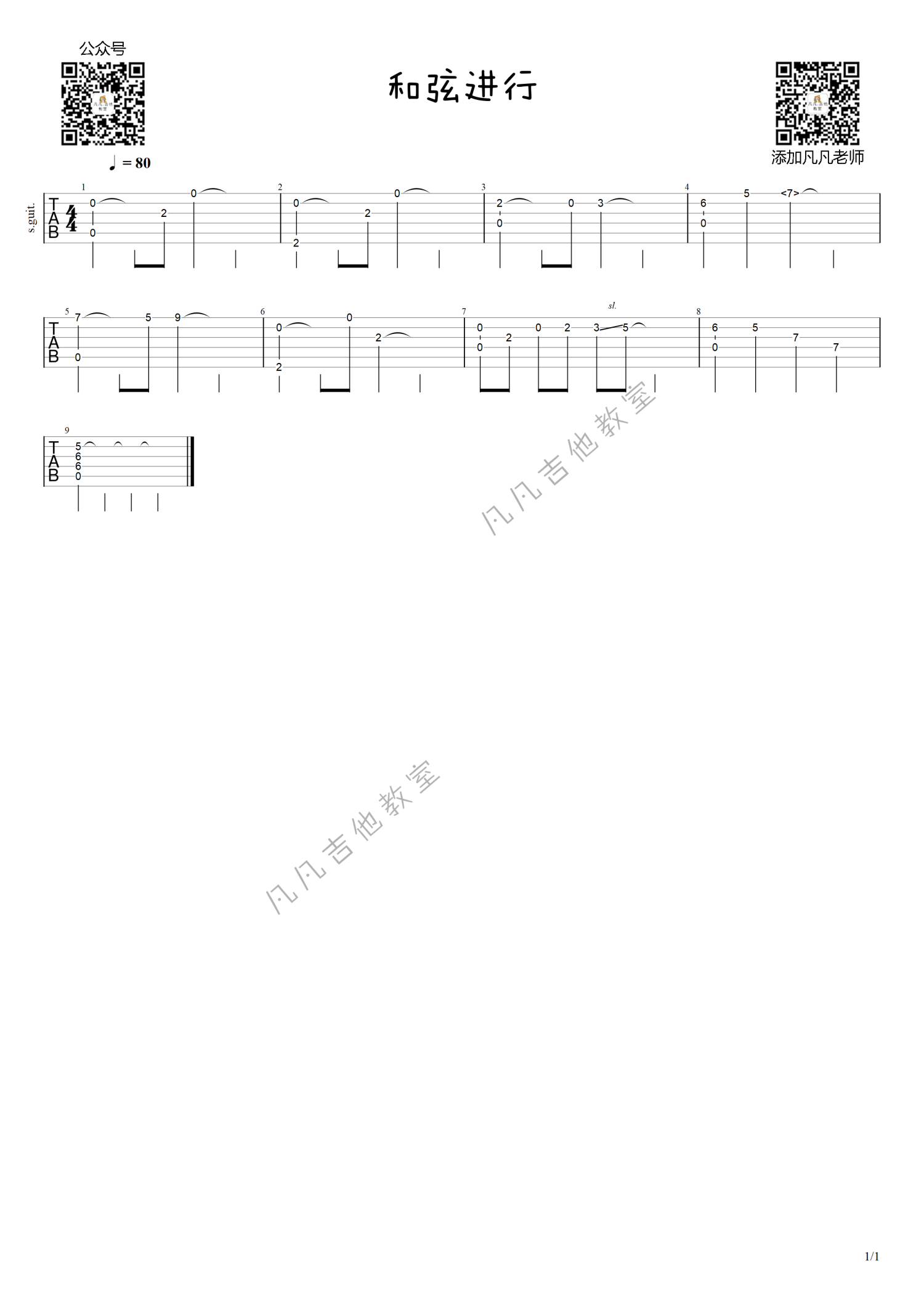 曲谱介绍: 凡凡吉他教室《和弦进行1645》吉他谱_A调吉他独奏谱_指弹