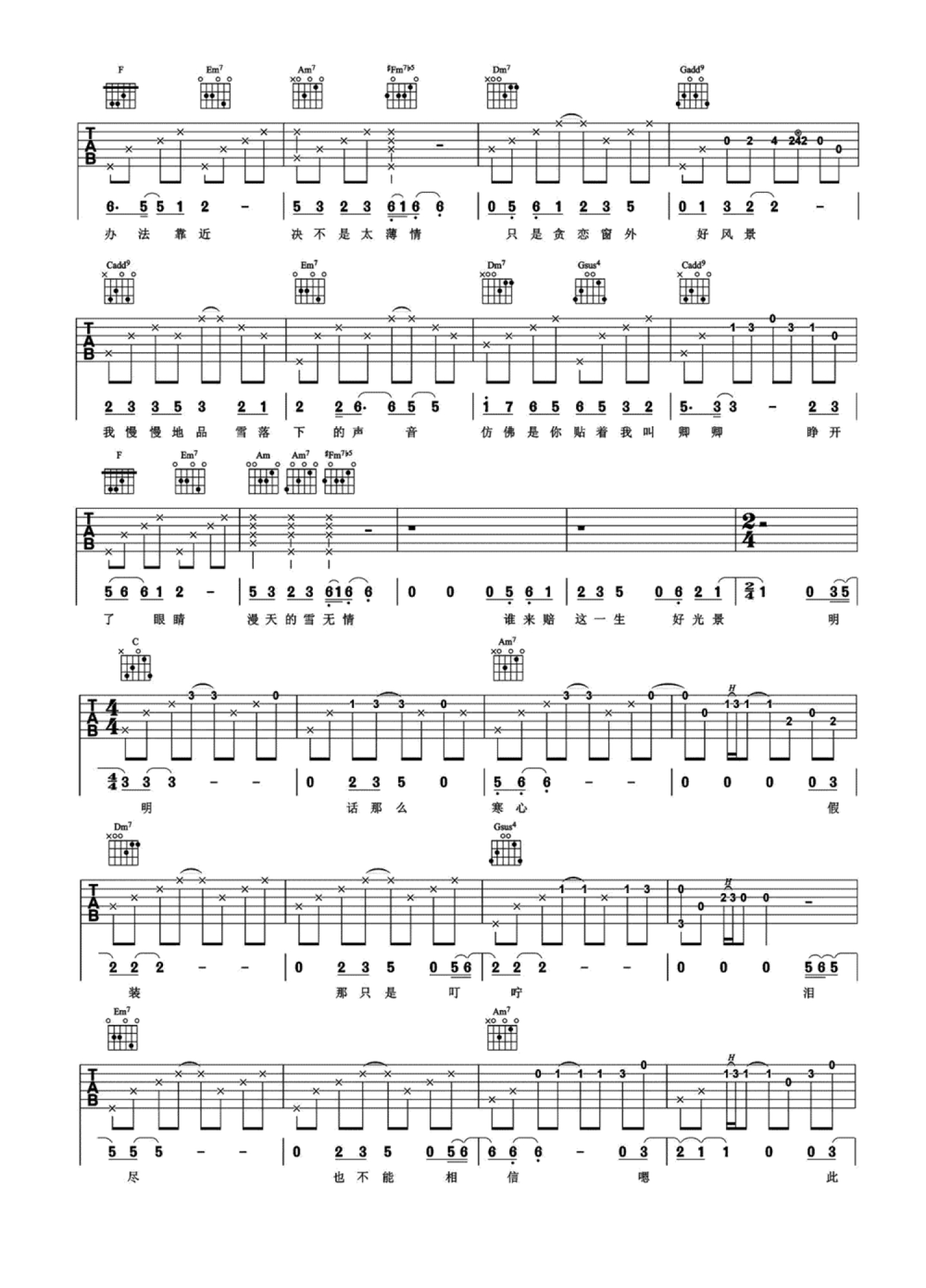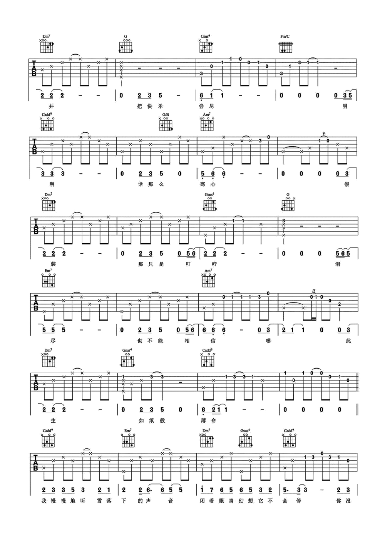 当前位置:琴谱网>吉他弹唱>雪落下的声音