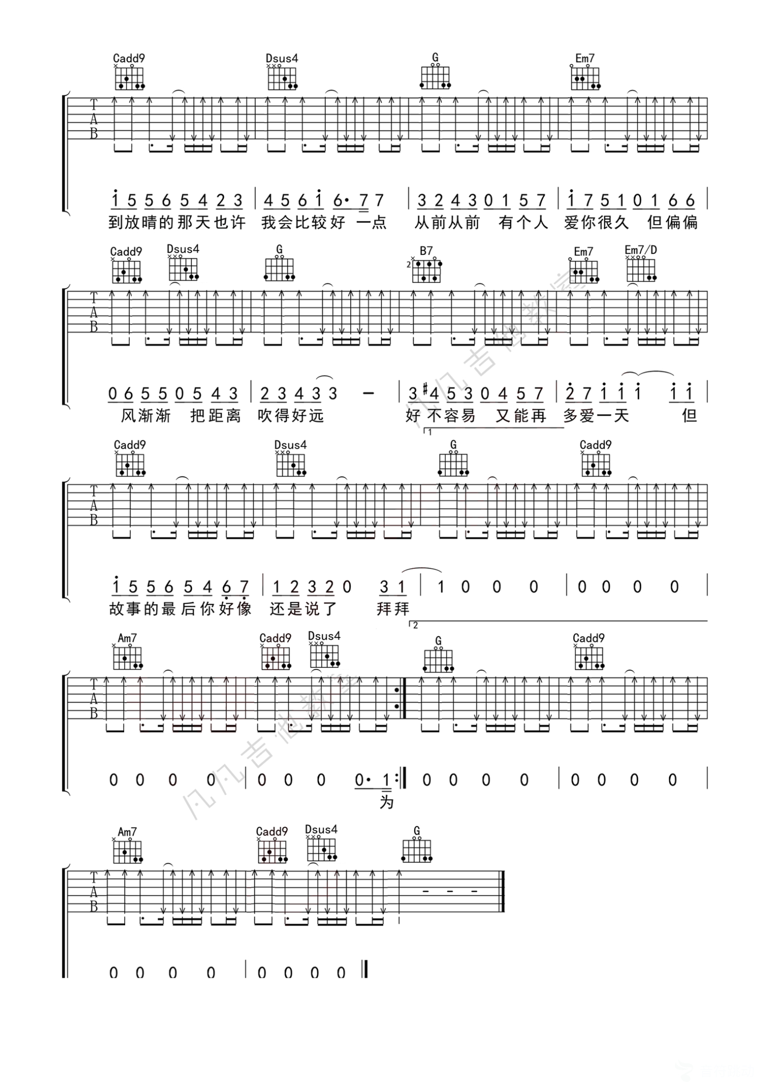 吉他弹唱G调来源:凡凡吉他教室1241 浏览2022-09-11 20:12发布图谱共3页
