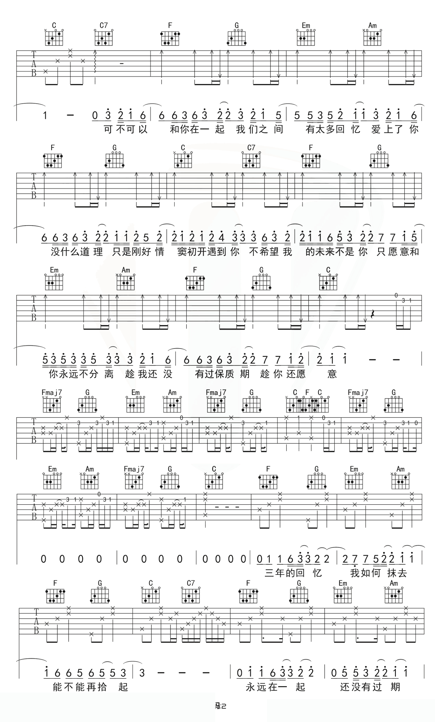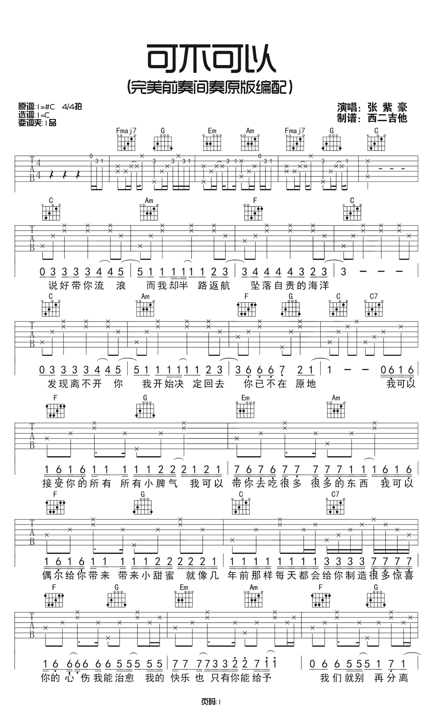 曲谱介绍: 可不可以吉他谱,张紫豪演唱,完美前奏间奏原版编配,可不可以六线谱,原调#C调,选调C,变调夹夹一品,最近,这首《可不可以》很火,感觉歌词写得特别甜,很多人却说,听红了眼眶。可不可以,和你在一起,我们之间有太多的回忆......大概是经过恋爱奔跑,最后还是分开了的人都对这句歌词有共鸣吧。爱一个错过的人,就好像寄一封没有地址的信。万物从不等人,没有谁会一直在原地等你。