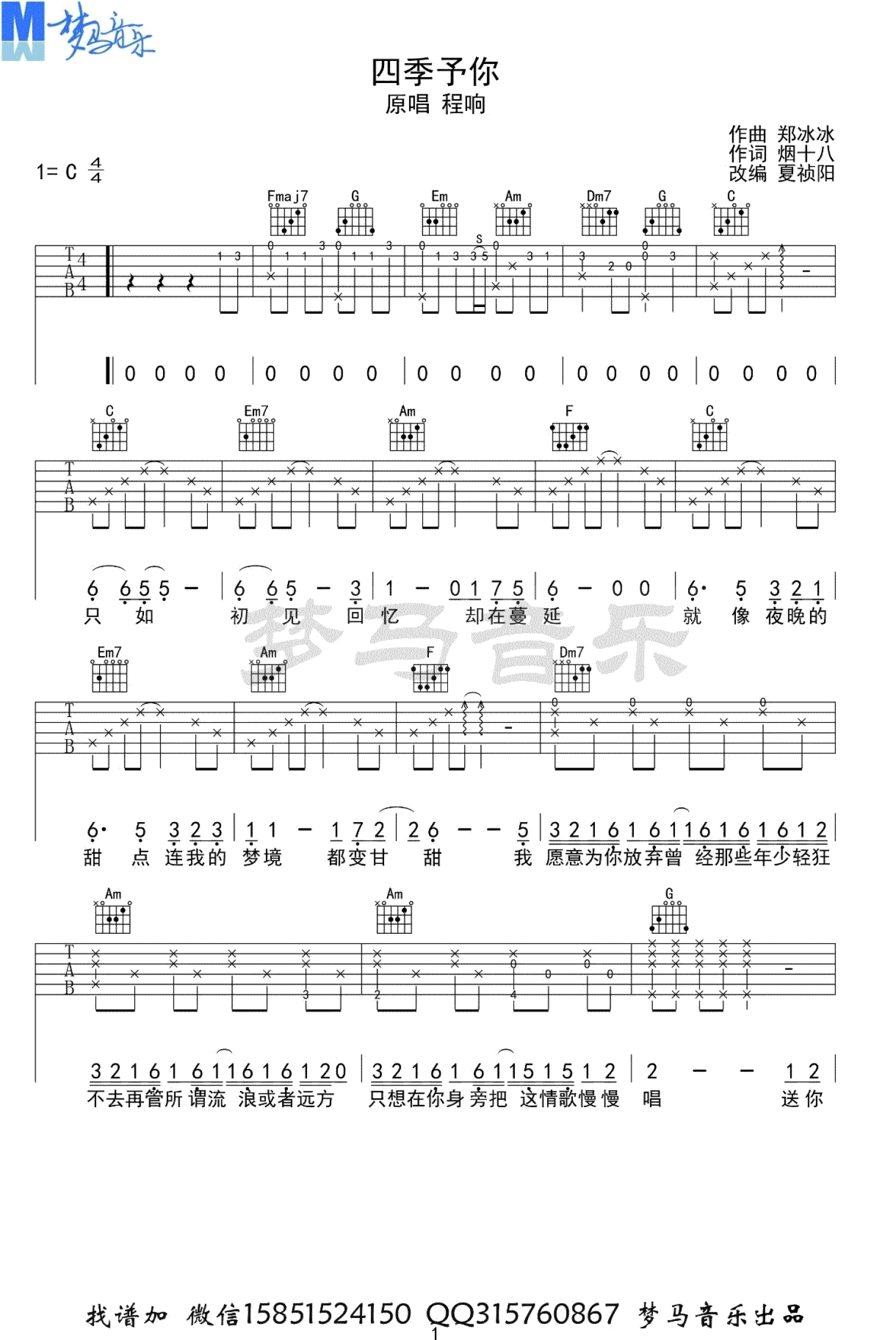 吉他弹唱C调来源:梦马音乐1149 浏览2021-05-27 21:32发布图谱共2页