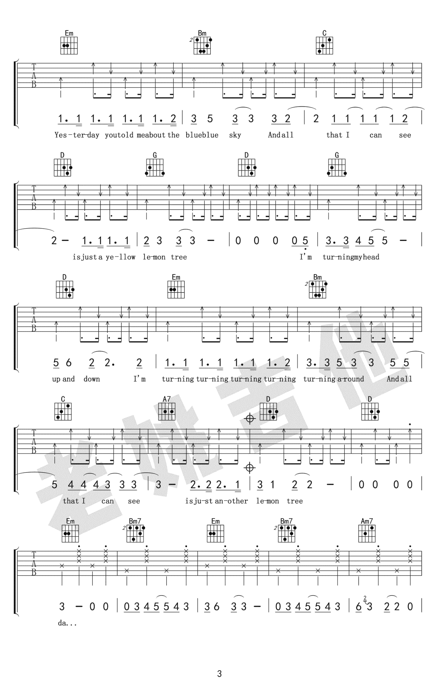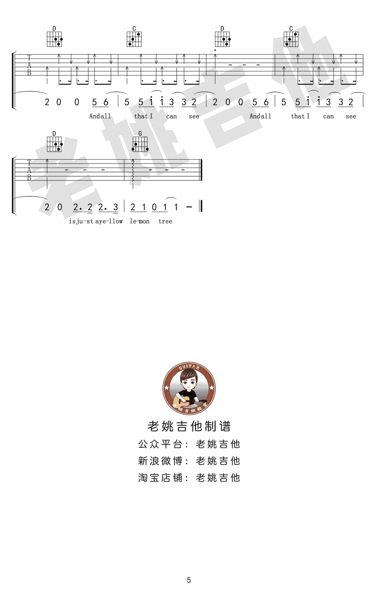 当前位置:琴谱网>吉他弹唱>Lemon Tree
