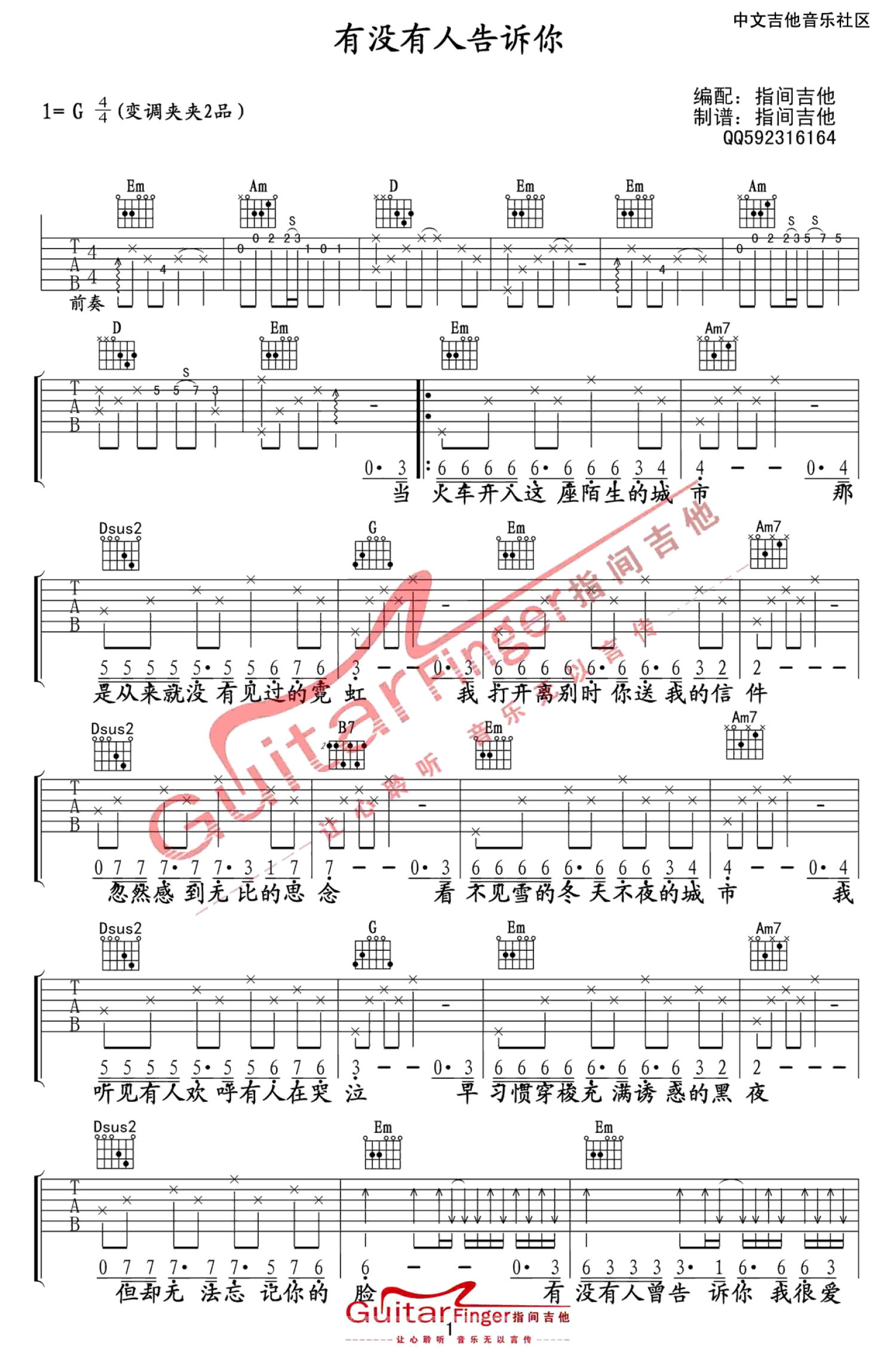 当前位置:琴谱网>吉他弹唱>有没有人告诉你