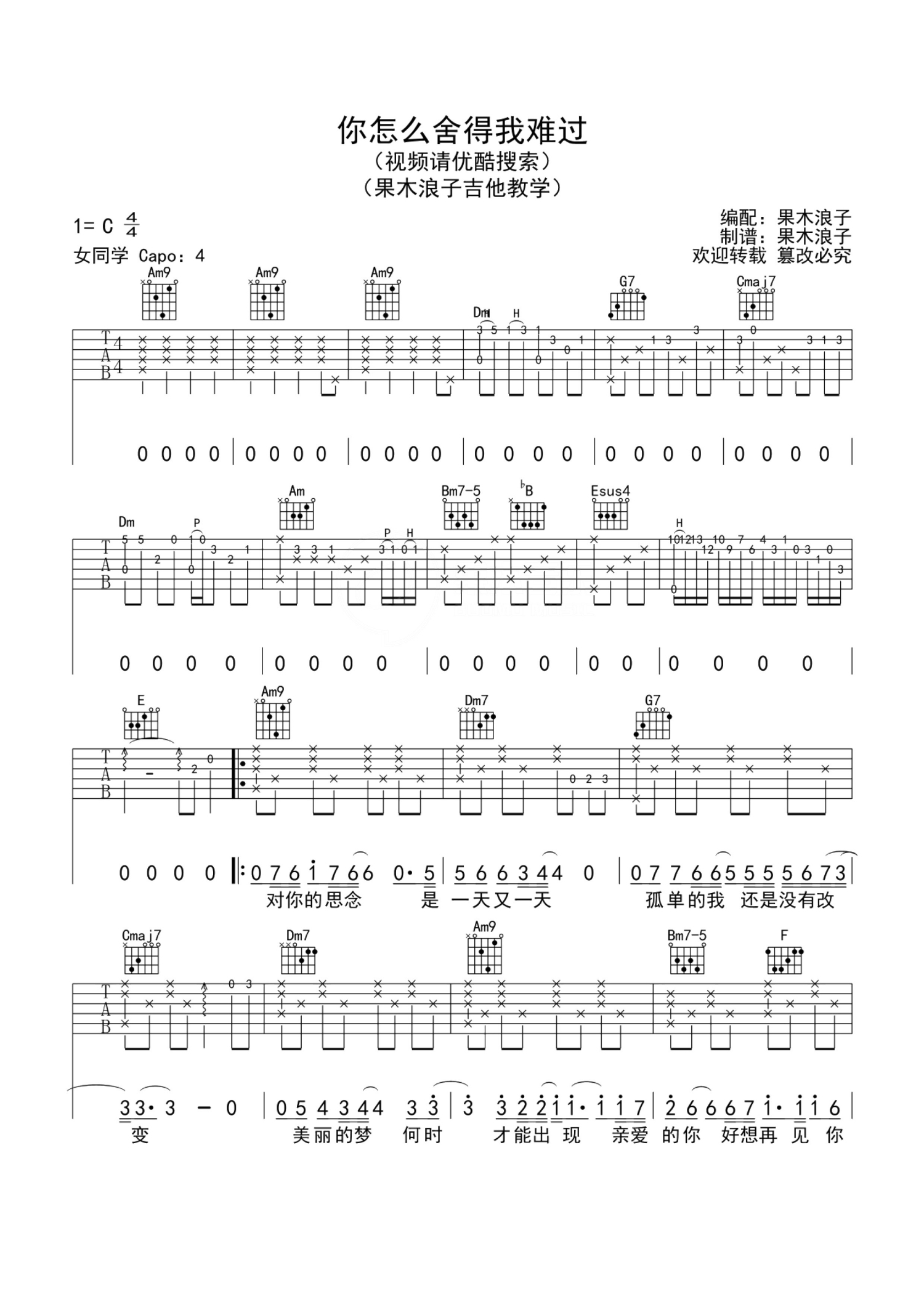 当前位置:琴谱网>吉他弹唱>你怎么舍得我难过
