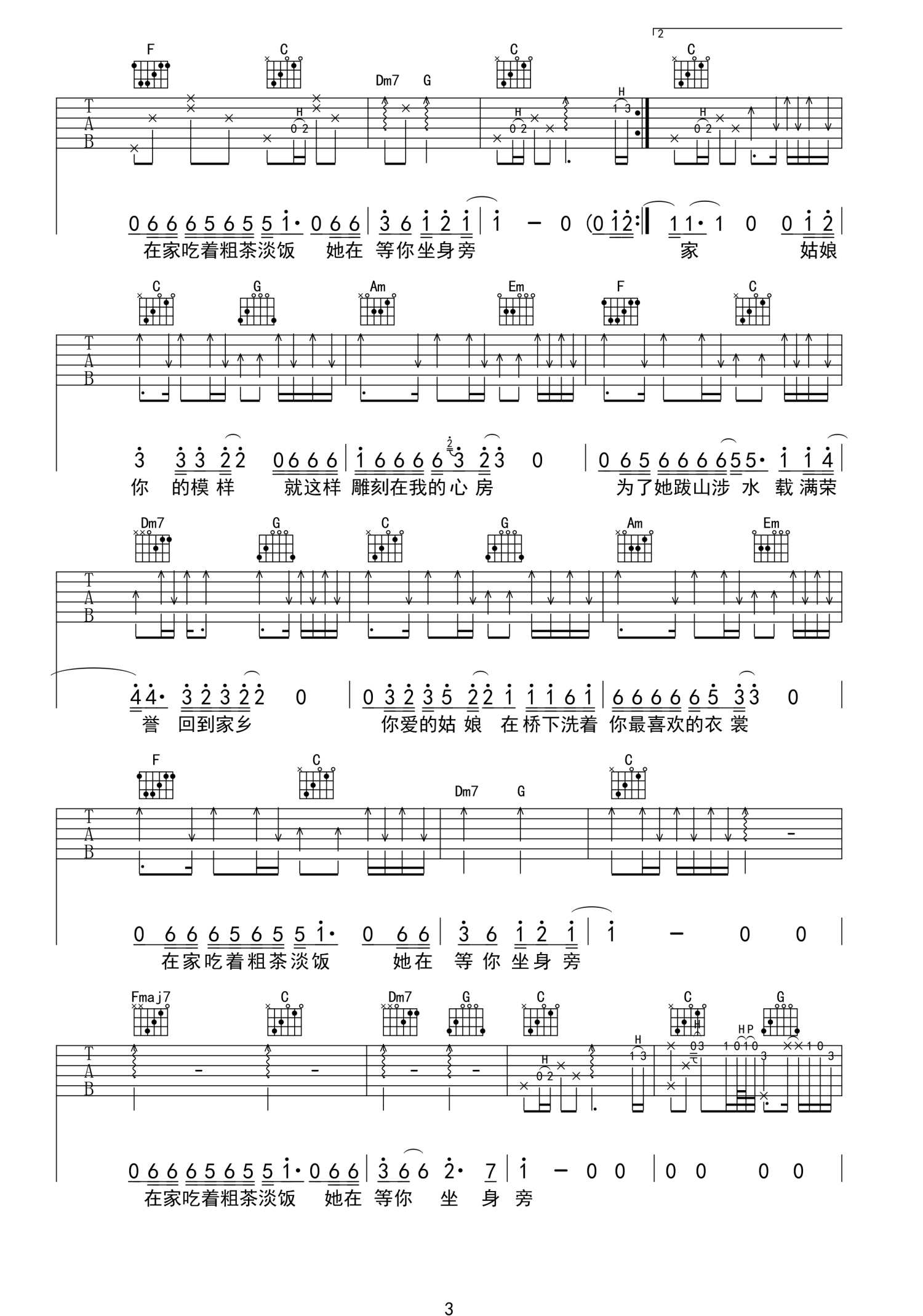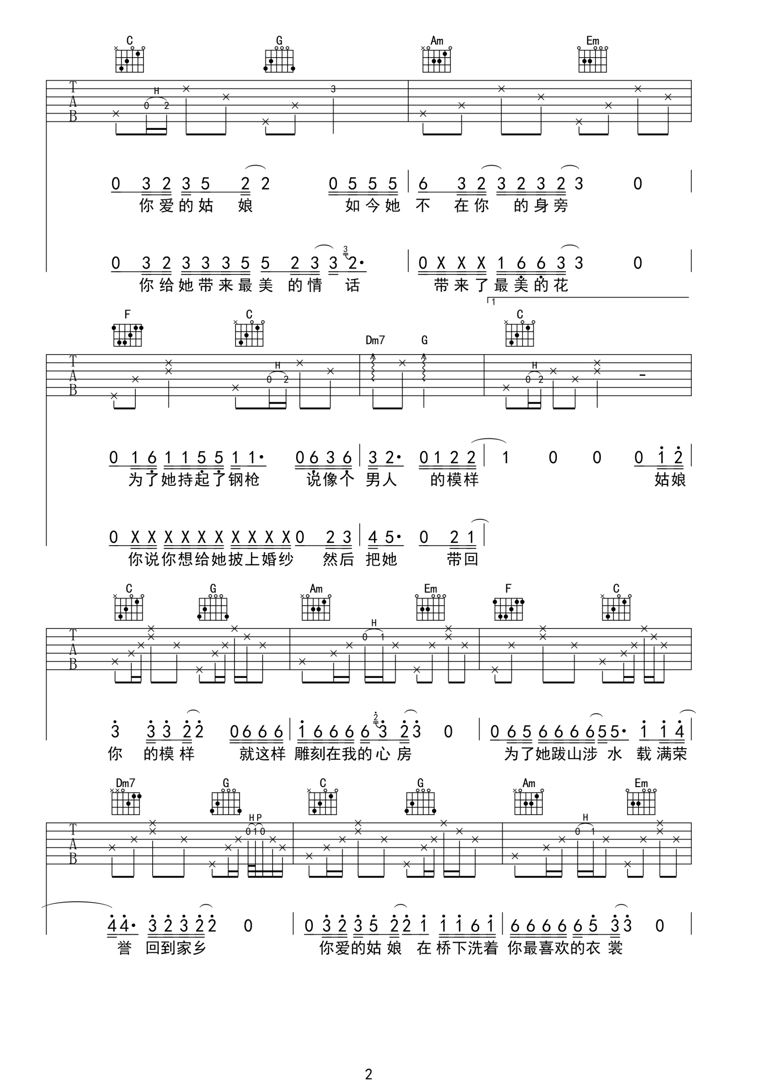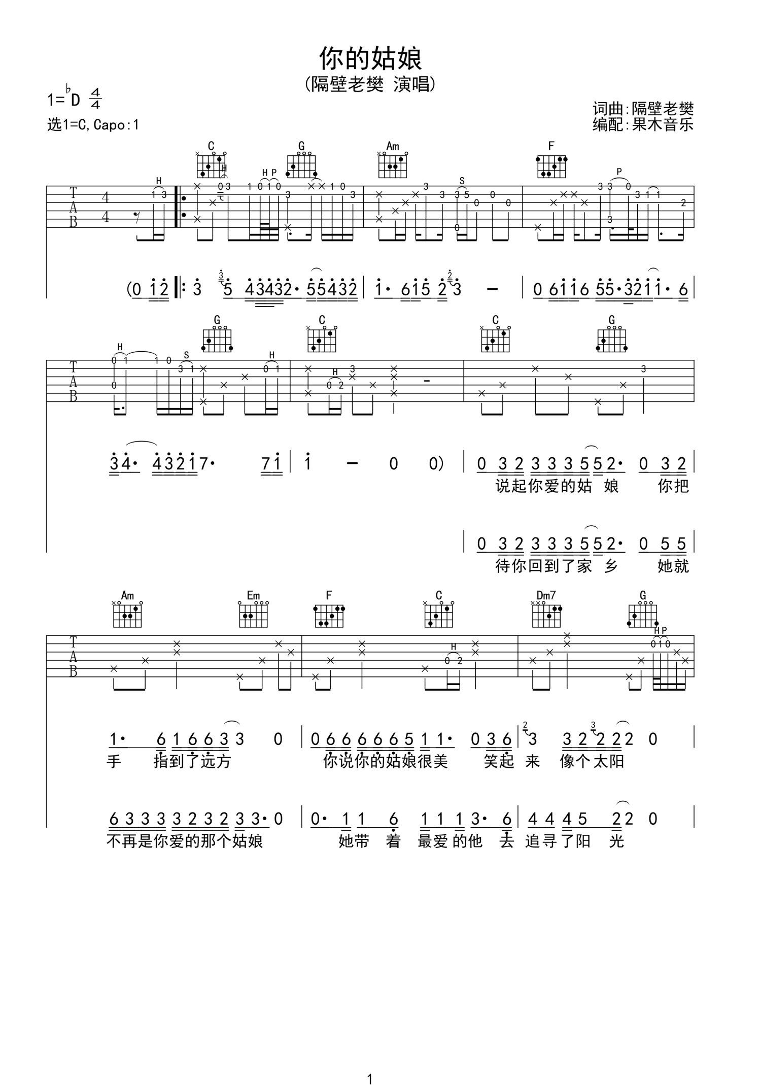 曲谱介绍: 隔壁老樊《你的姑娘》吉他谱_C调吉他弹唱谱