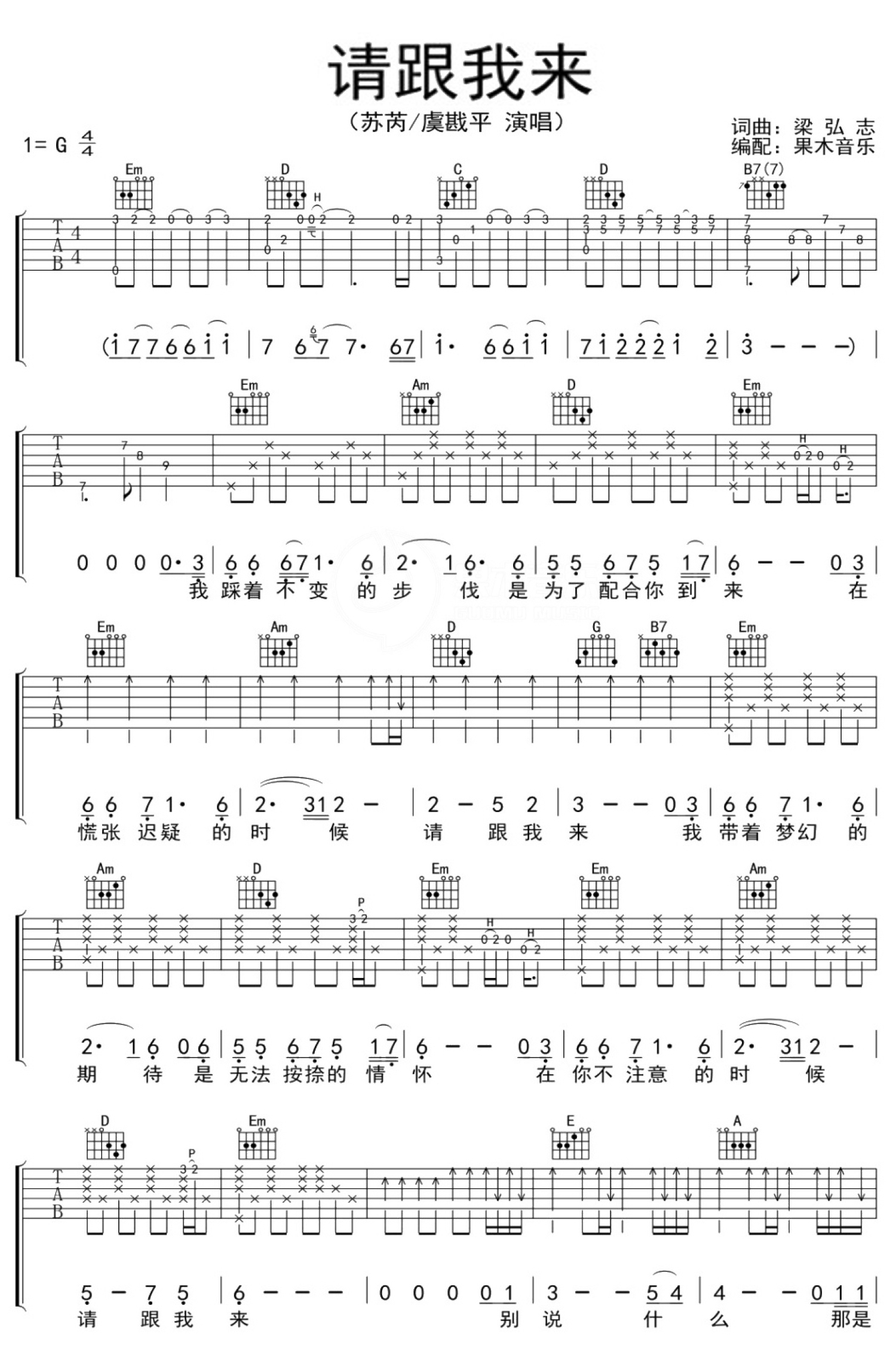 当前位置:琴谱网>吉他弹唱>请跟我来
