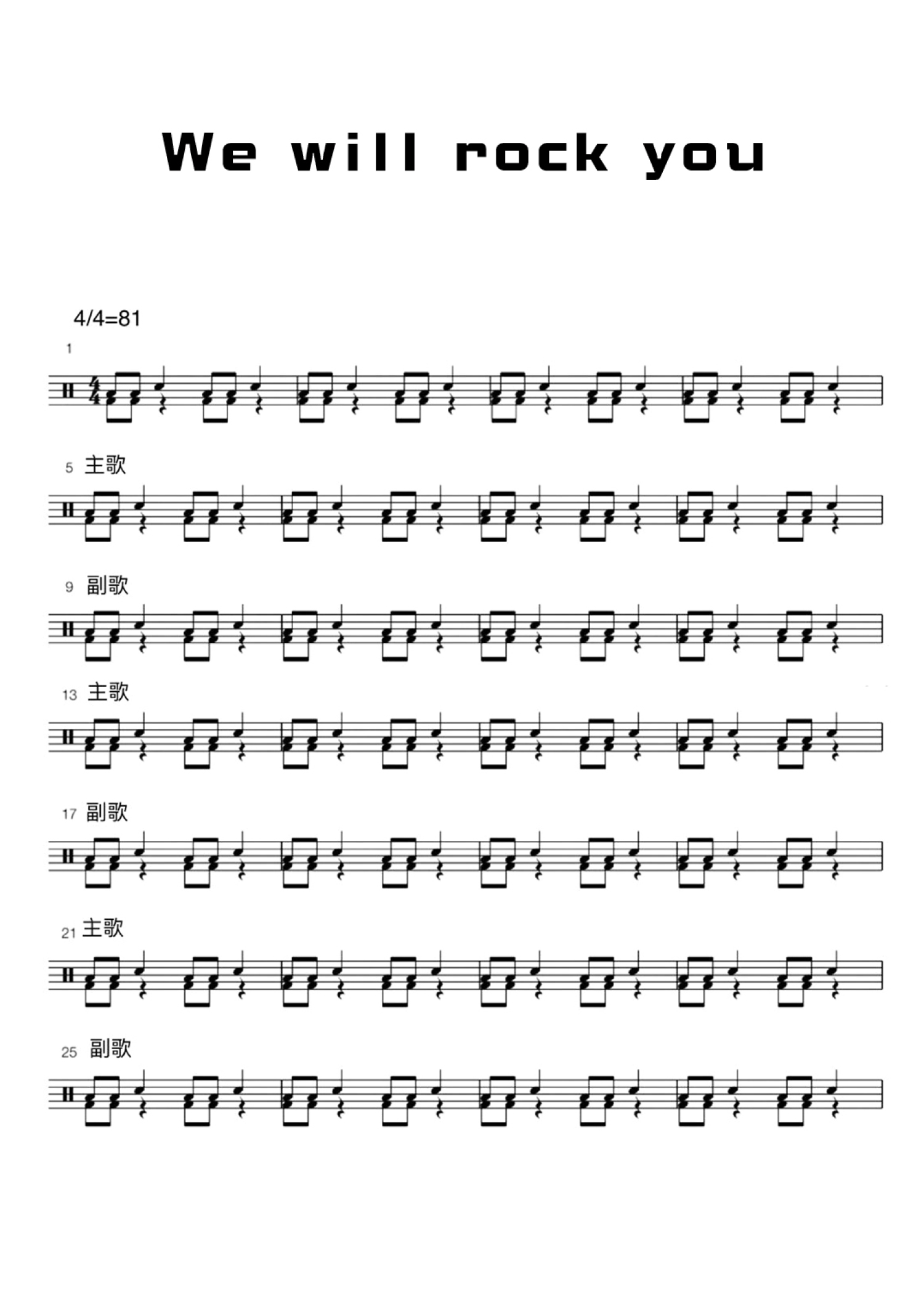We will rock you鼓谱 - 儿童架子鼓 - 架子鼓谱