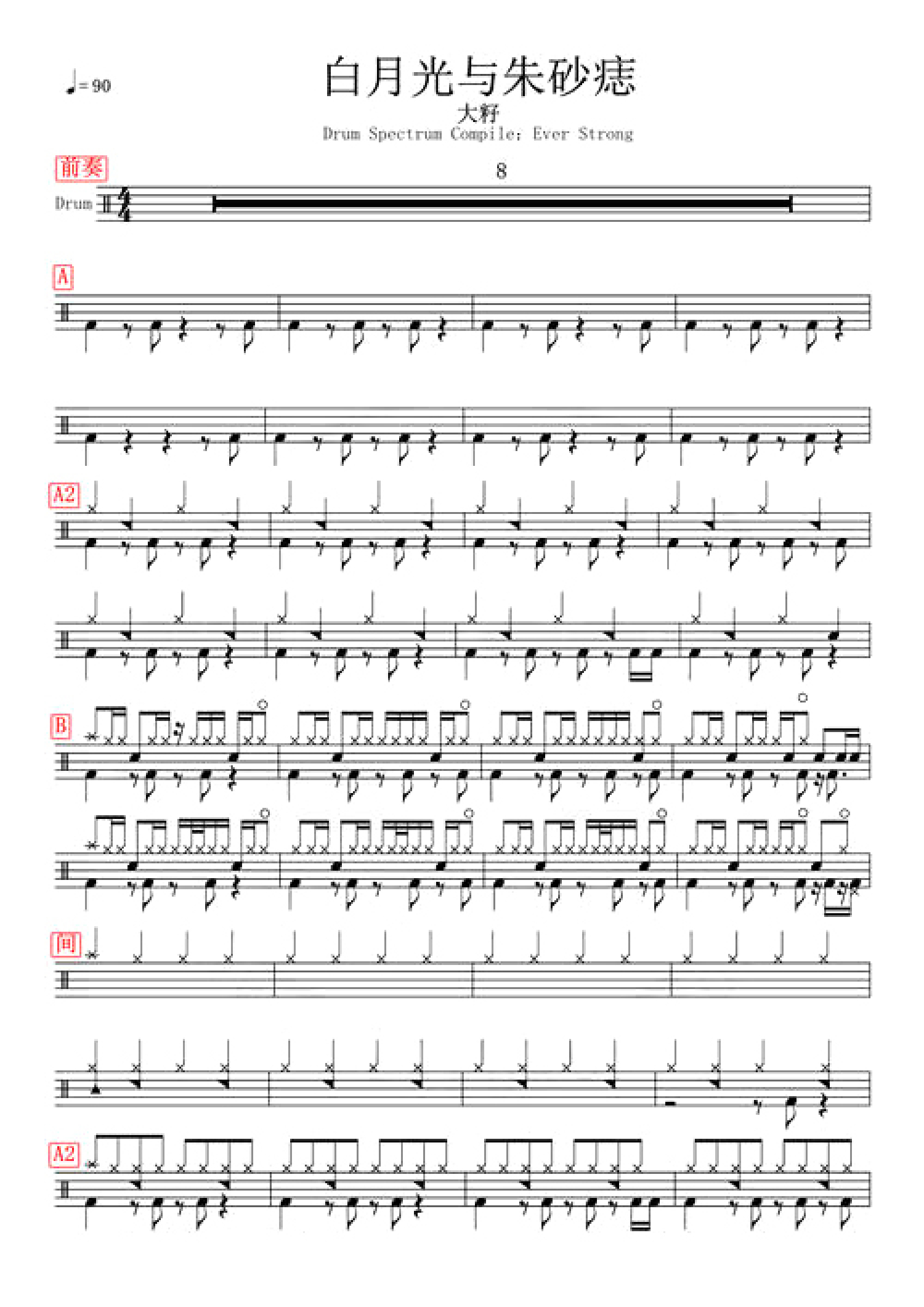 曲谱介绍: 大籽《白月光与朱砂痣》鼓谱_架子鼓谱