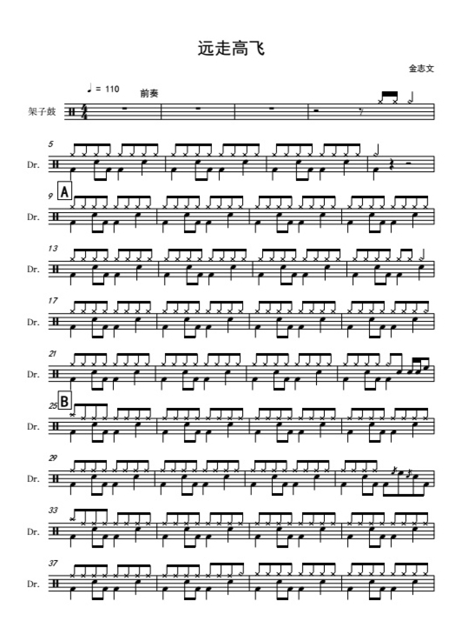曲谱介绍: 金志文《远走高飞》鼓谱_架子鼓谱