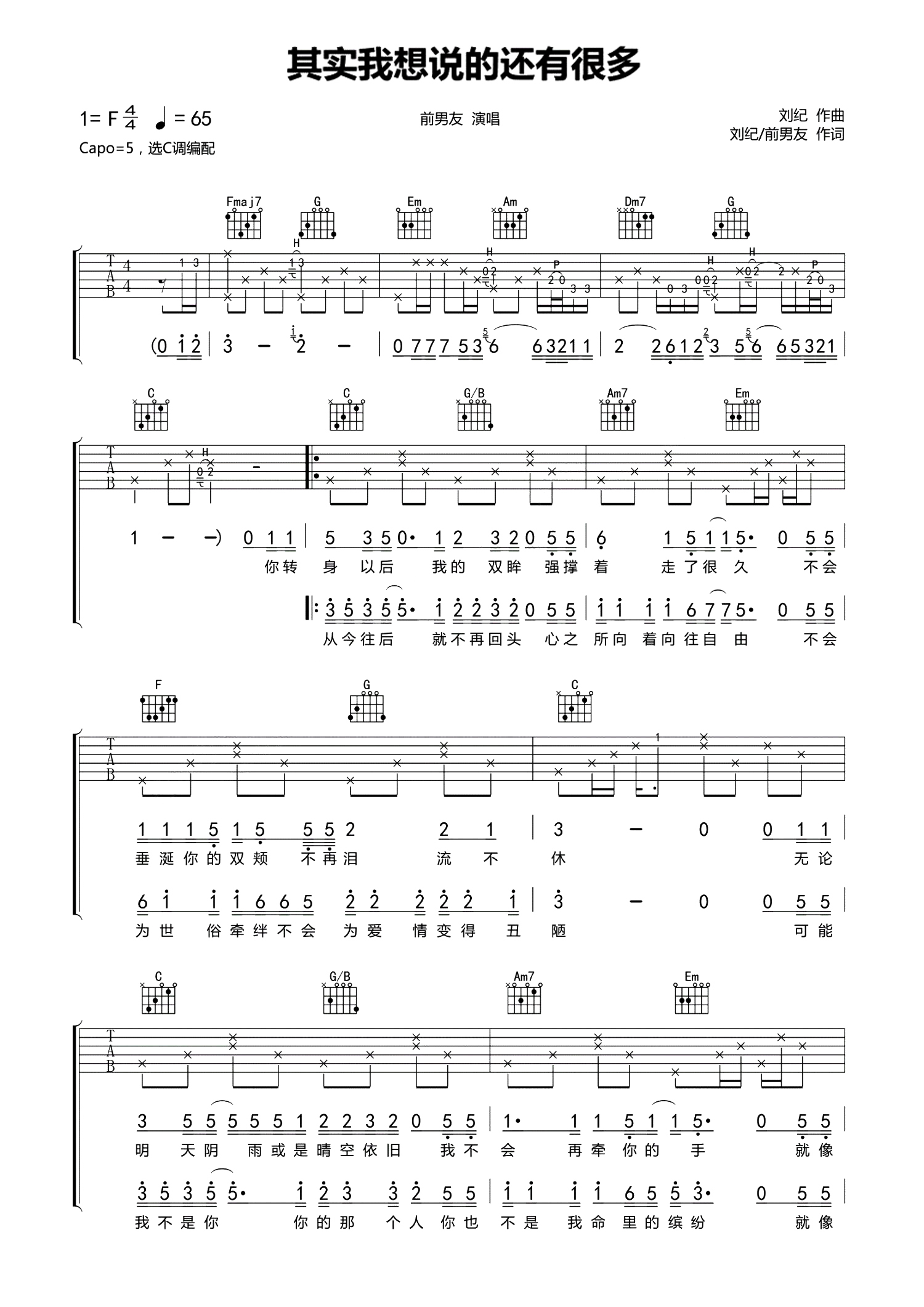 曲谱介绍: 前男友《其实我想说的还有很多》吉他谱_C调吉他弹唱谱