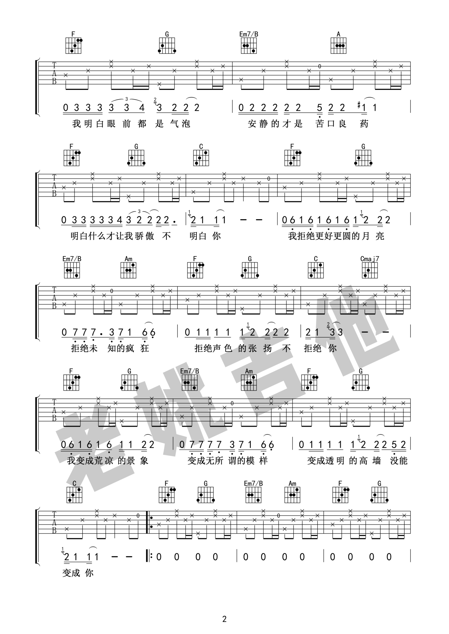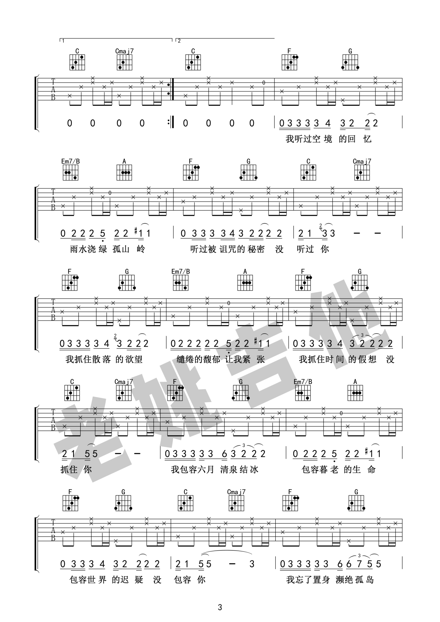 吉他弹唱C调来源:老姚吉他584 浏览2021-06-05 16:46发布图谱共4页