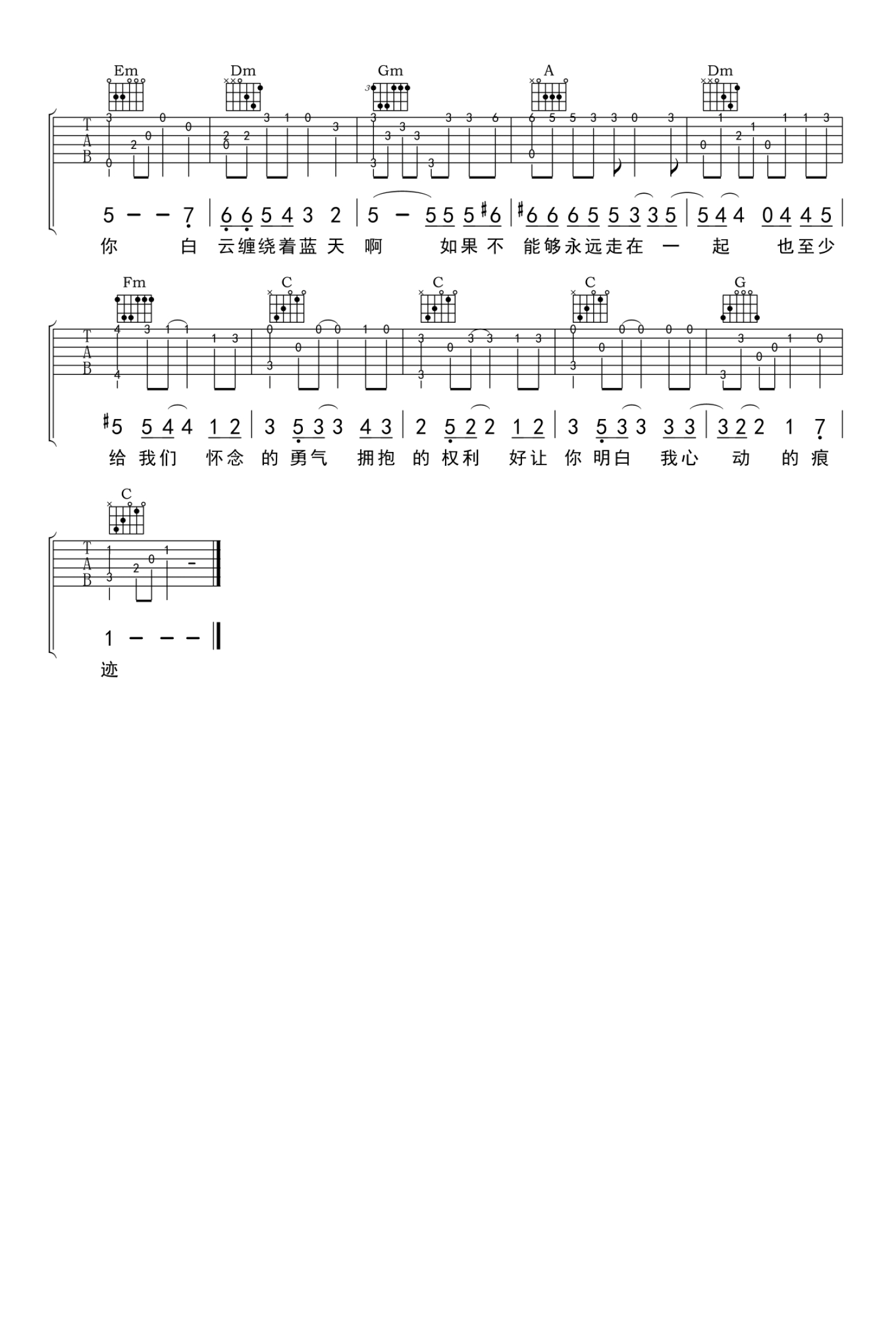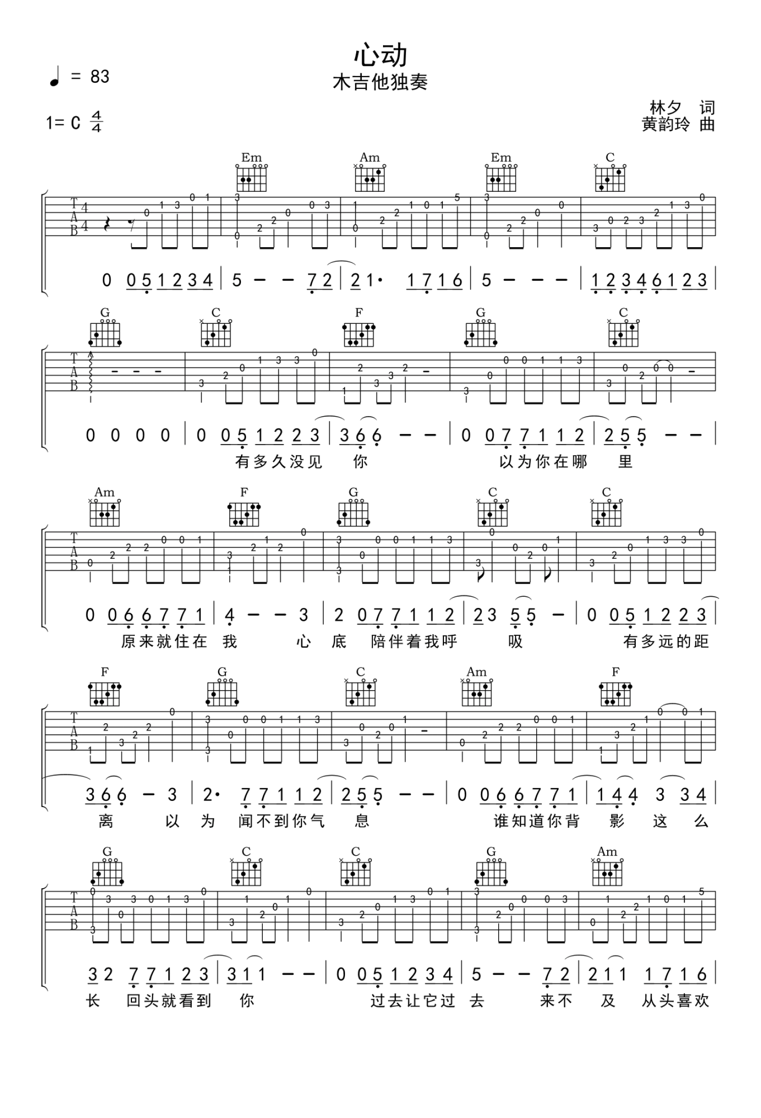 曲谱介绍: 庾澄庆《心动》吉他谱_C调吉他独奏谱