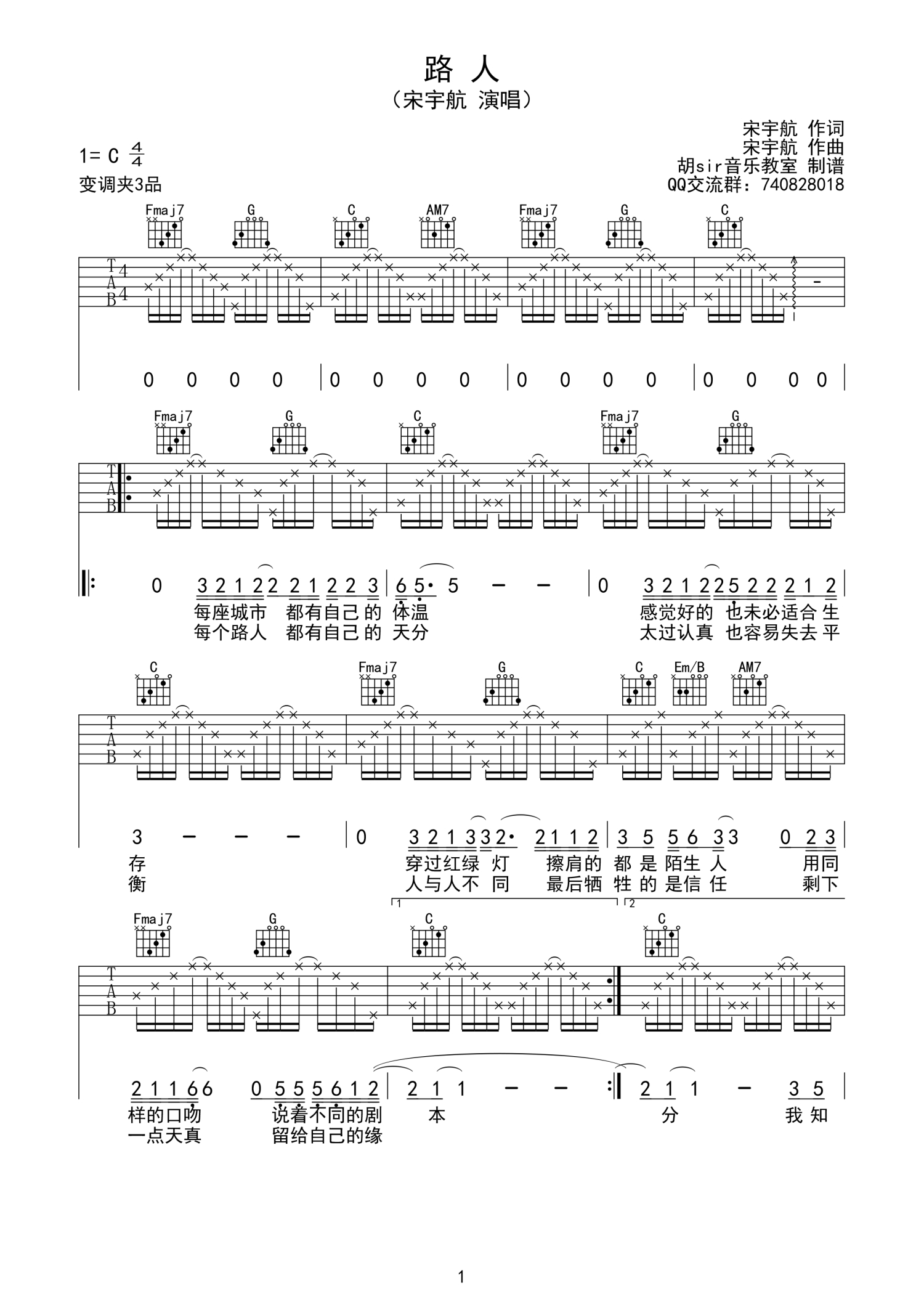 • 路人吉他谱 - 宋宇航 - C调吉他弹唱谱第1张