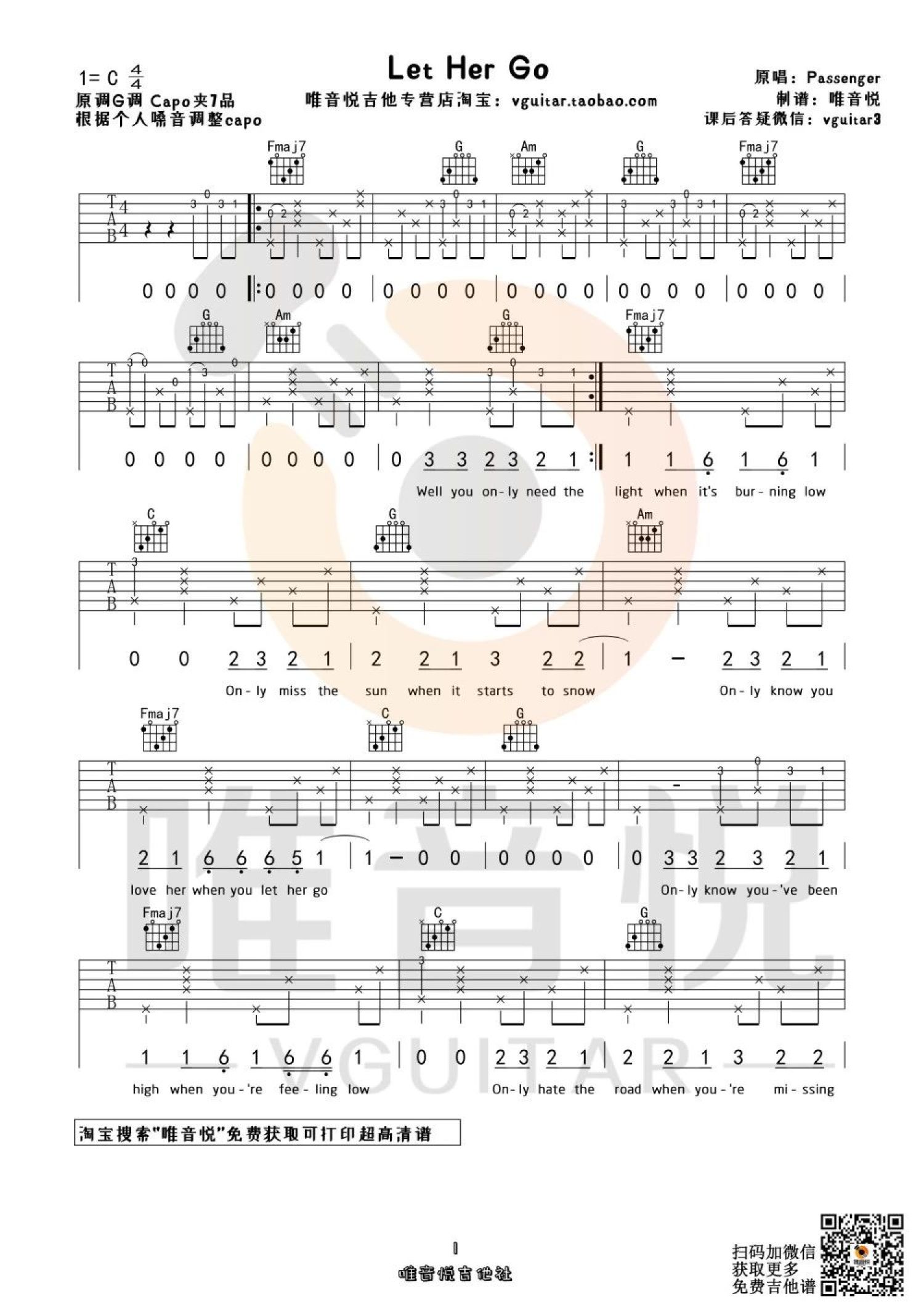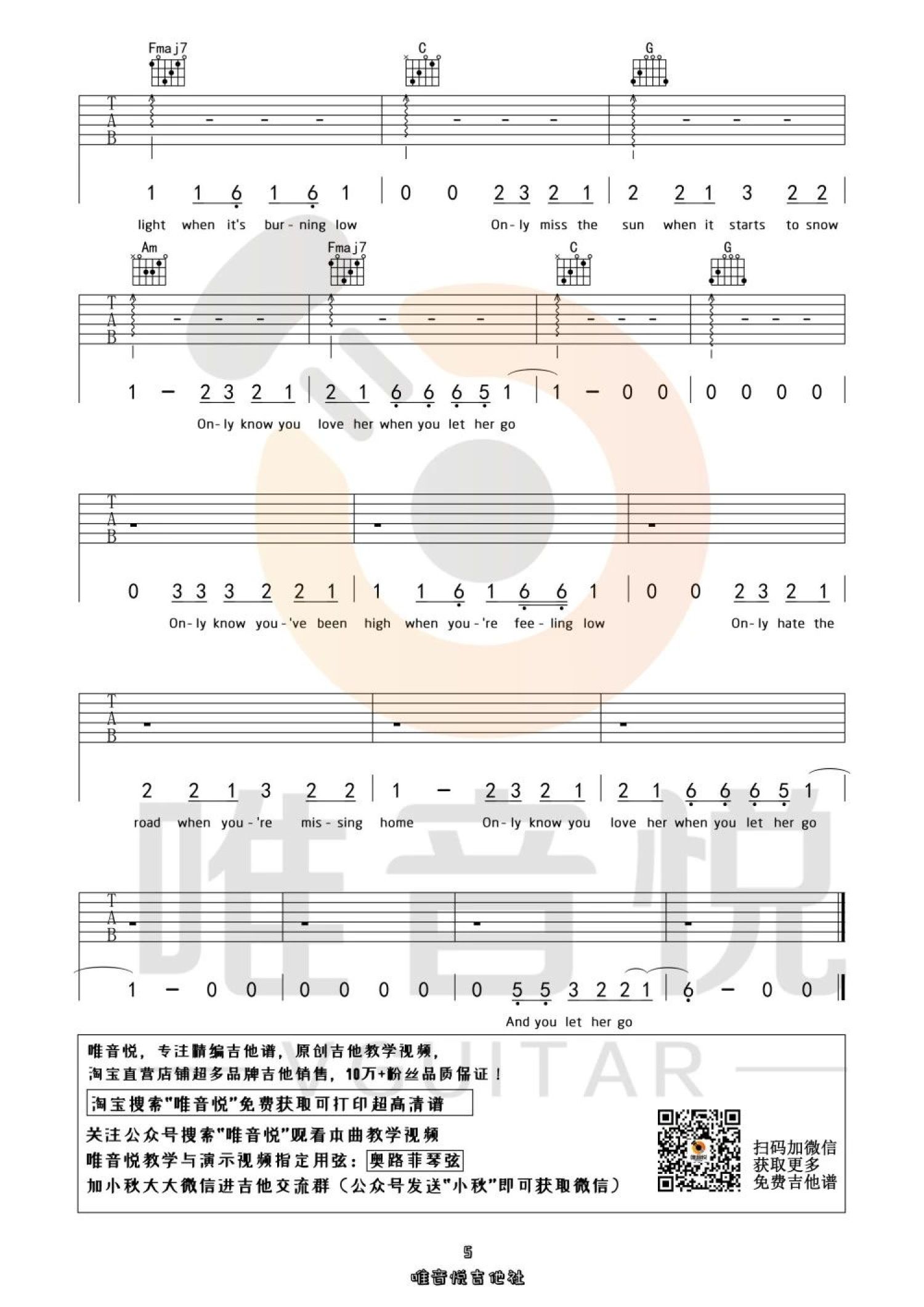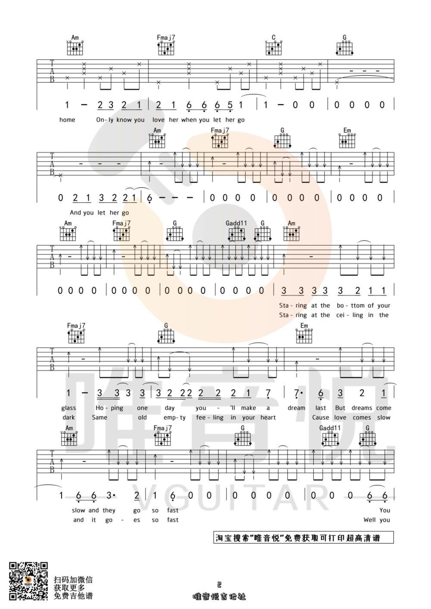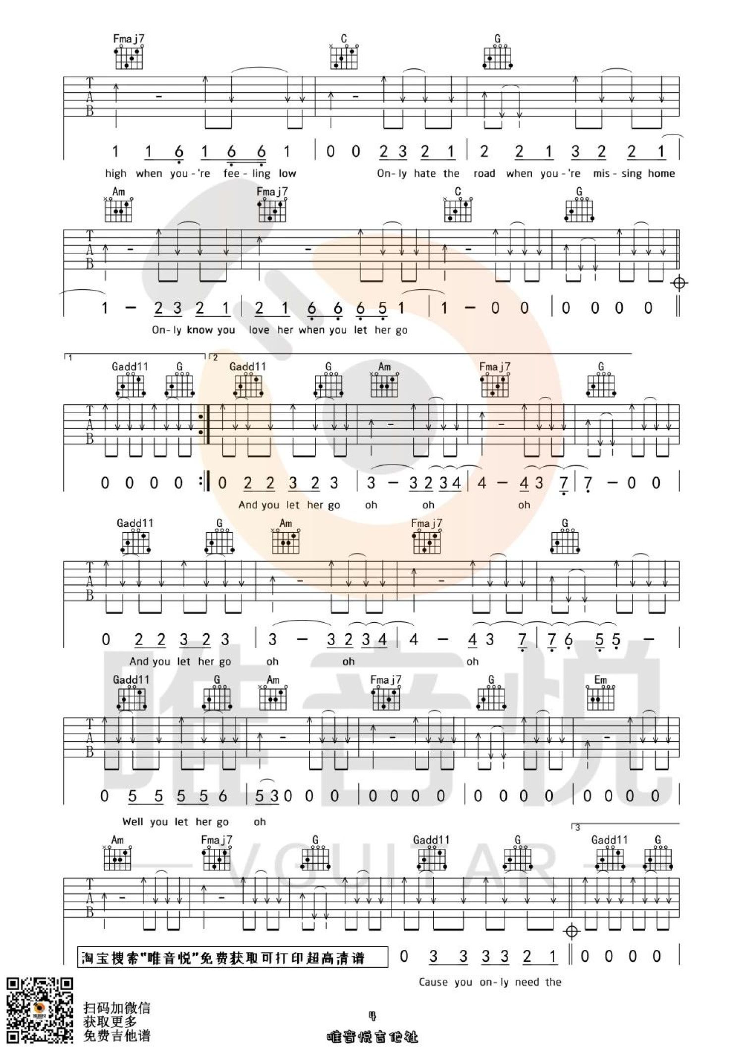 Let Her Go吉他谱 - Passenger - G调吉他弹唱谱